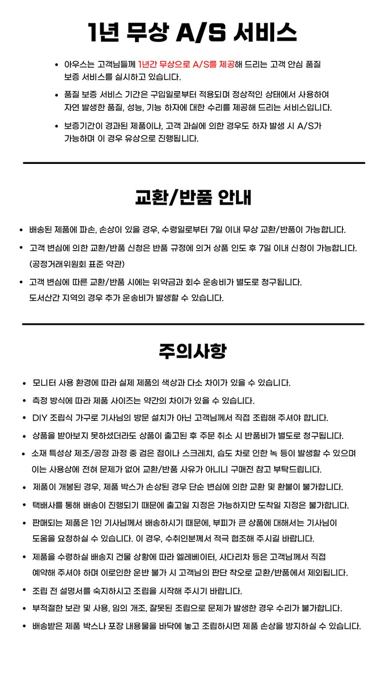 - ㆍ제조사의 사정 (신모델 출시 등) 및 부품 가격 변동 등에 의해 무료 교환/반품으로 요청하는 경우
