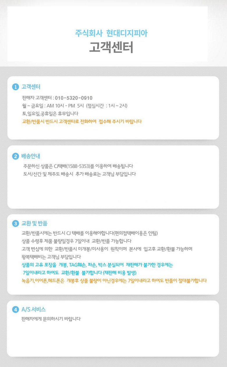 - ㆍ교환/반품에 관한 일반적인 사항은 판매자가 제시사항보다 관계법령이 우선합니다.