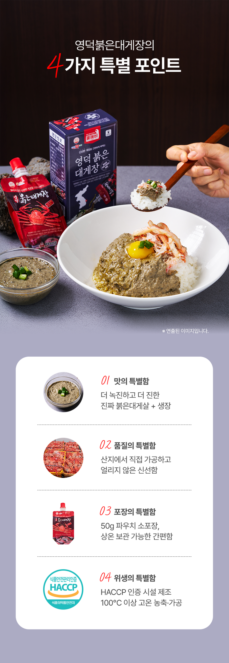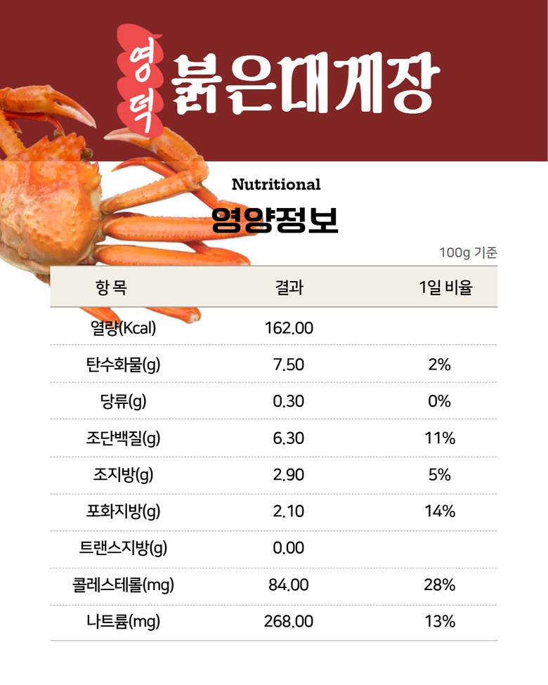 | 제품명 | 영덕붉은대게장 | 식품의 유형 | 상품 상세페이지 참조 |
