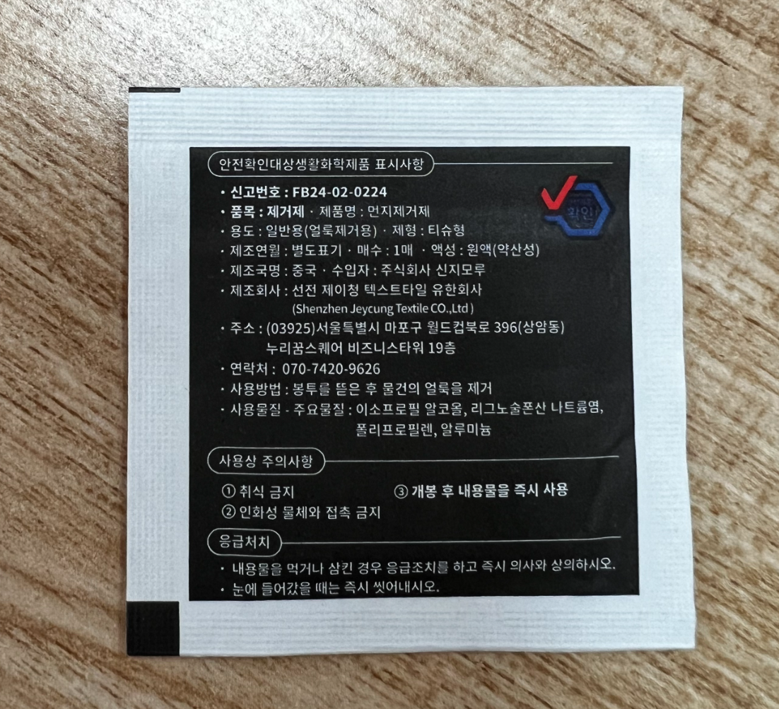 | 제조국(원산지) | 본품 : 중국 / 알콜솜 : 컨텐츠 참조 | 제조자(수입자) | 본품 : 신지모루(정확한 제조사, 수입자 정보 업체미제공) / 알콜솜 : 컨텐츠 참조 |