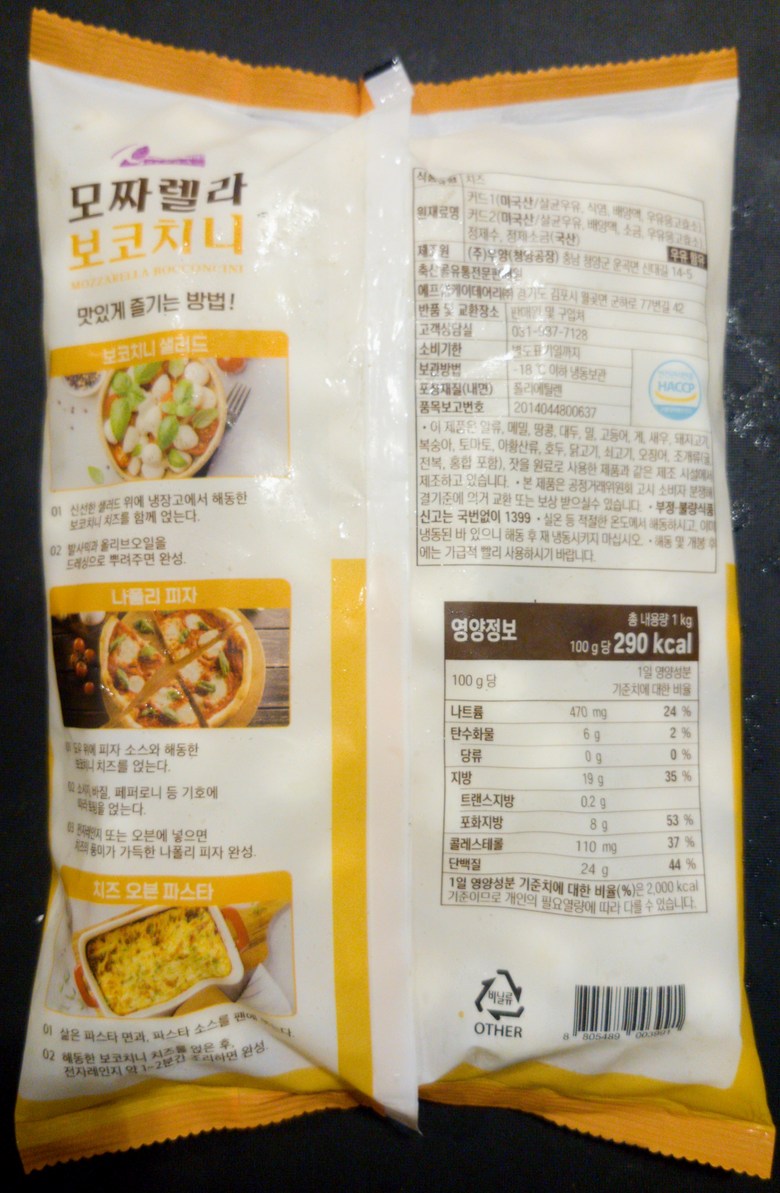 | 제품명 | 모짜렐라 보코치니 | 식품의 유형 | 치즈 |