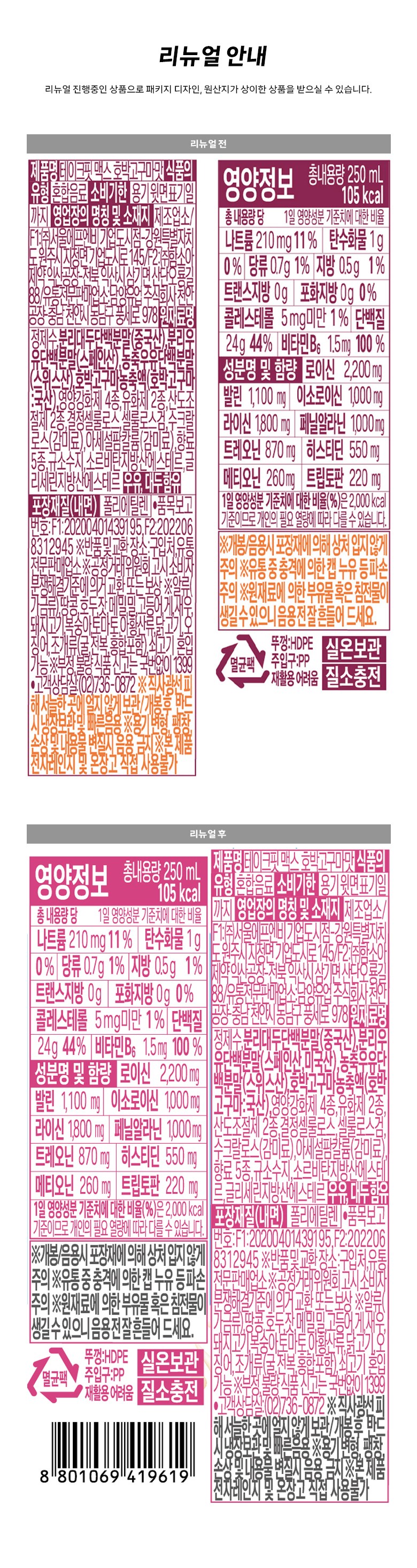 | 포장단위별 내용물의 용량(중량), 수량 | 250ml, 3개 | 원재료명 및 함량 | 컨텐츠 참조 |
