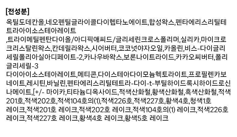 | 용량(중량) | 3.5g | 제품 주요 사양 | 모든 피부용 |