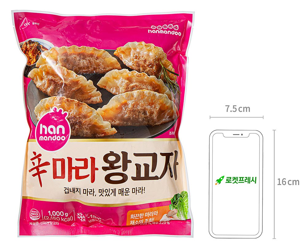 얼얼한 매운맛이 매력적인 신 마라 왕교자예요. 향긋한 목이버섯, 탱글탱글한 새송이버섯 등을 품어 풍성하지요. 재료를 큼직하게 썰어내어 다채로운 식감이 더욱 돋보인답니다. 프라이팬으로 노릇하게 구워 간식이나 술안주로 활용해보세요.