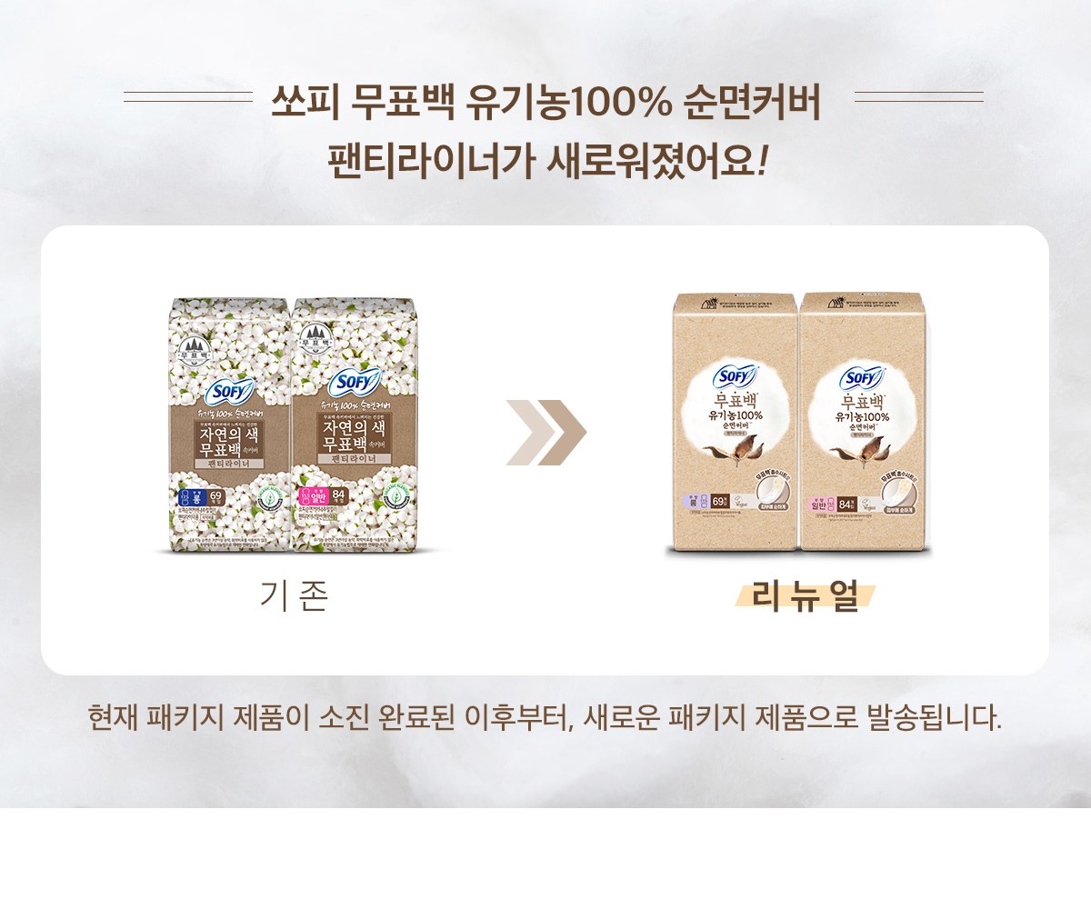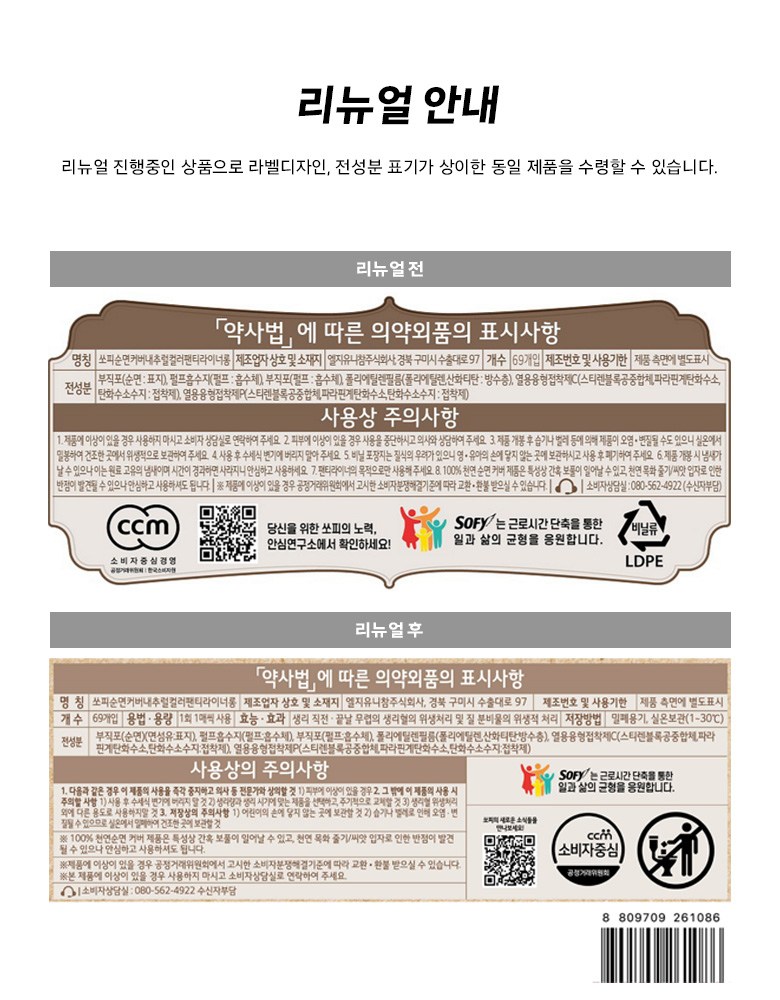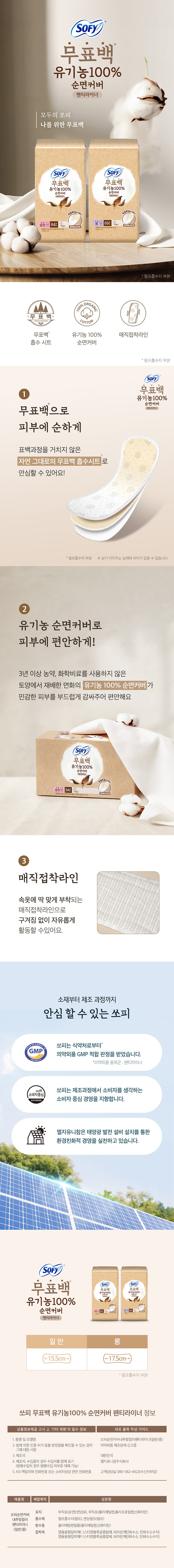| 품명 및 모델명 | 쏘피순면커버내추럴컬러팬티라이너롱 | 인증/허가 사항 | 의약외품 |