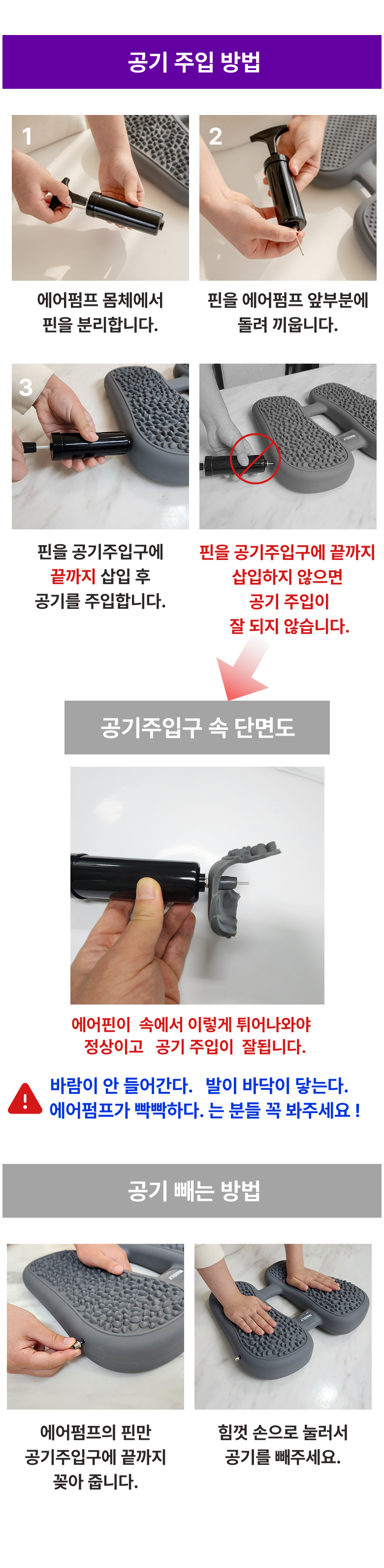 | 제조국 | 중국 | 취급시 주의사항 | 바람을 너무 많이 넣으면 중심잡기 어려우니 주의 하십시오.날카롭고 뽀족한 물체에 닿지 않게 사용하십시오.너무 추운곳에서 사용하지 마십시오.권장하중은 100KG 이하 입니다.노약자 관절 질환이 있는 분들은 사용에 주의 하여 사용해 주십시오. |