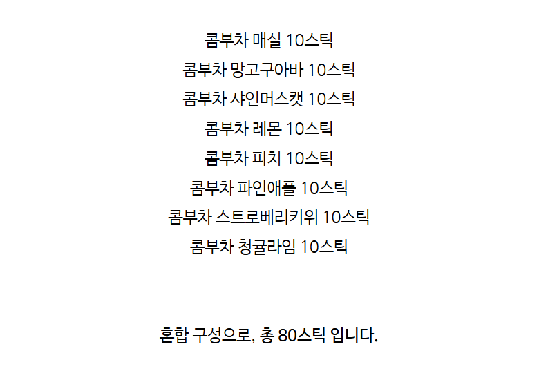 | 품명 및 모델명 | 티젠 콤부차 10스틱X8박스 혼합(80스틱) 보틀증정 | 인증/허가 사항 | 상품 상세페이지 참조 |