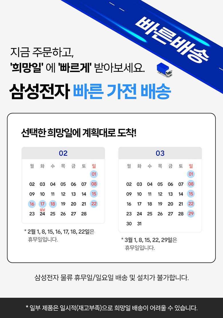 | 배송방법 | 설치배송 | 배송사 | 삼성직배송 |
