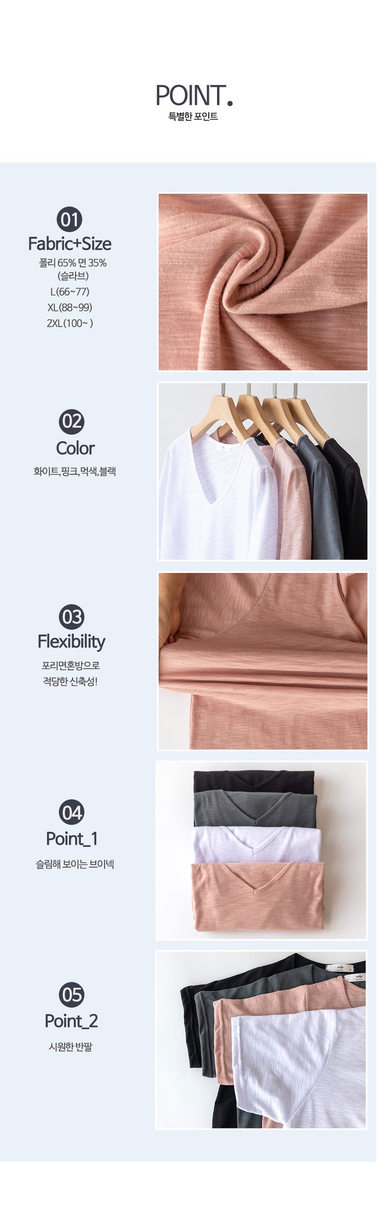 - 소매 길이: 반소매(어깨~팔꿈치 길이)