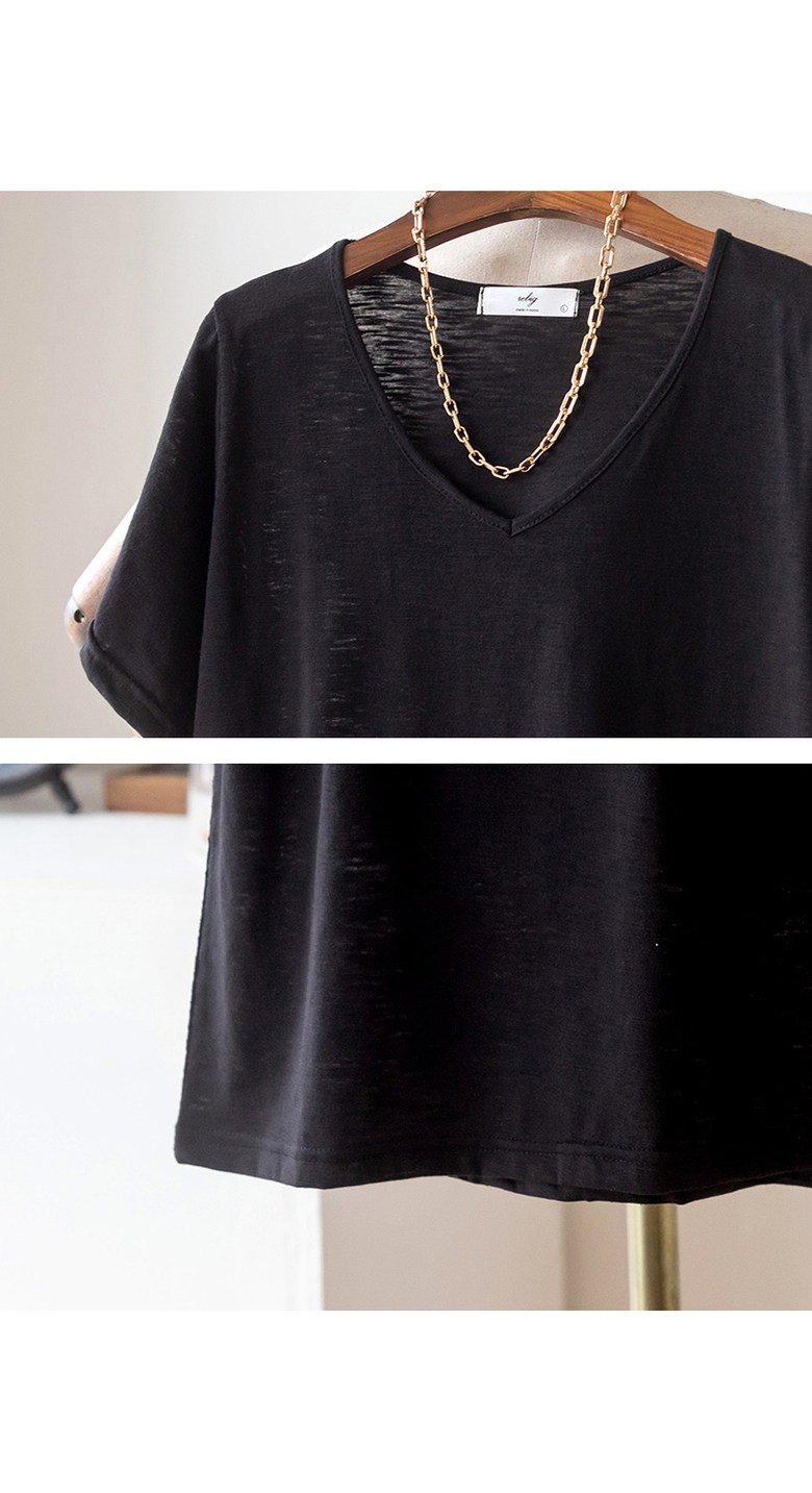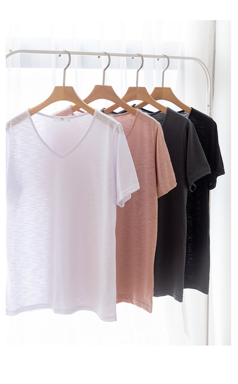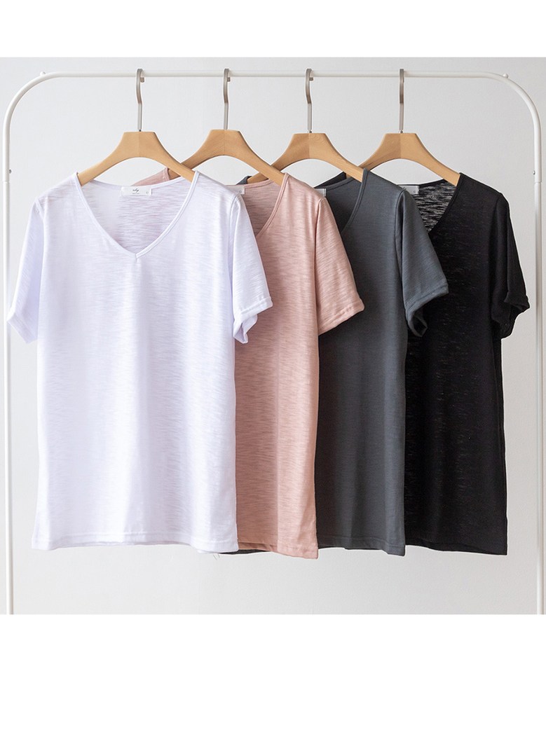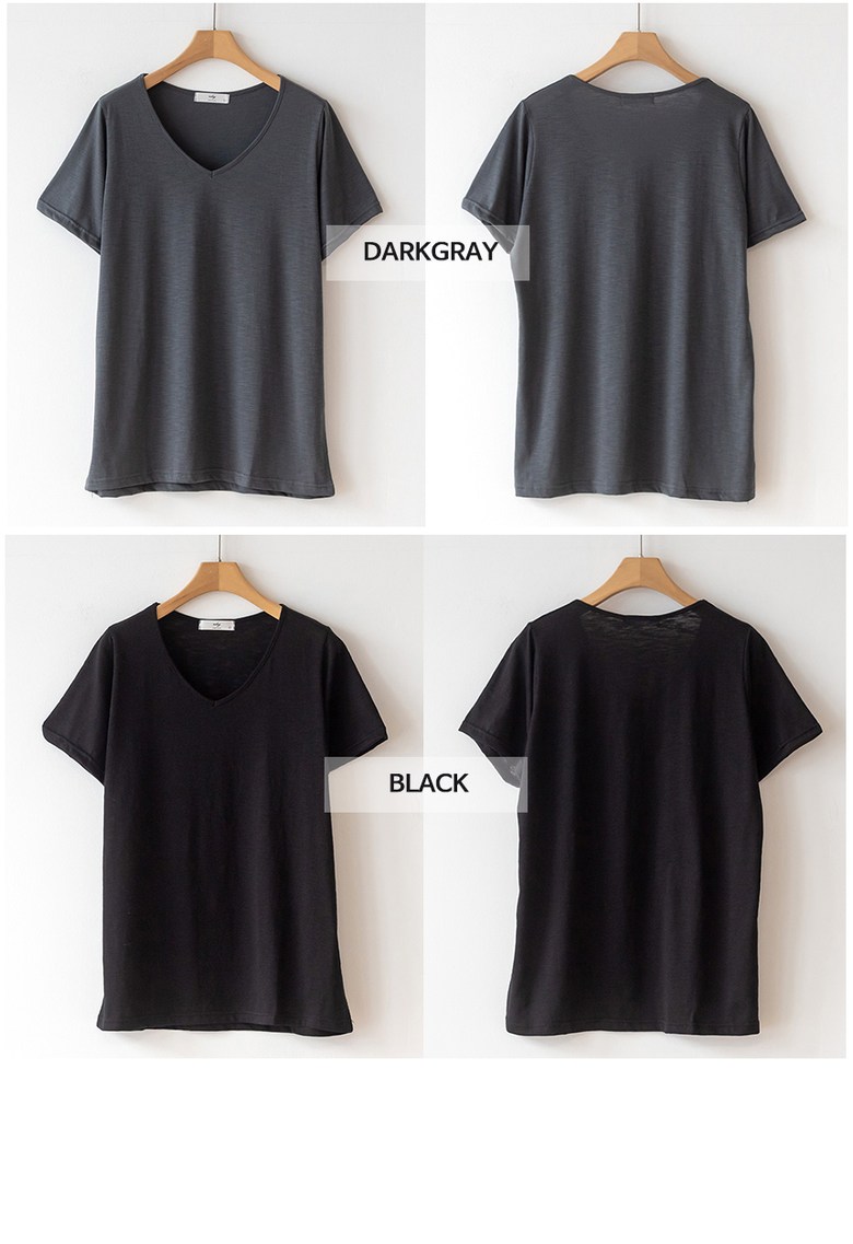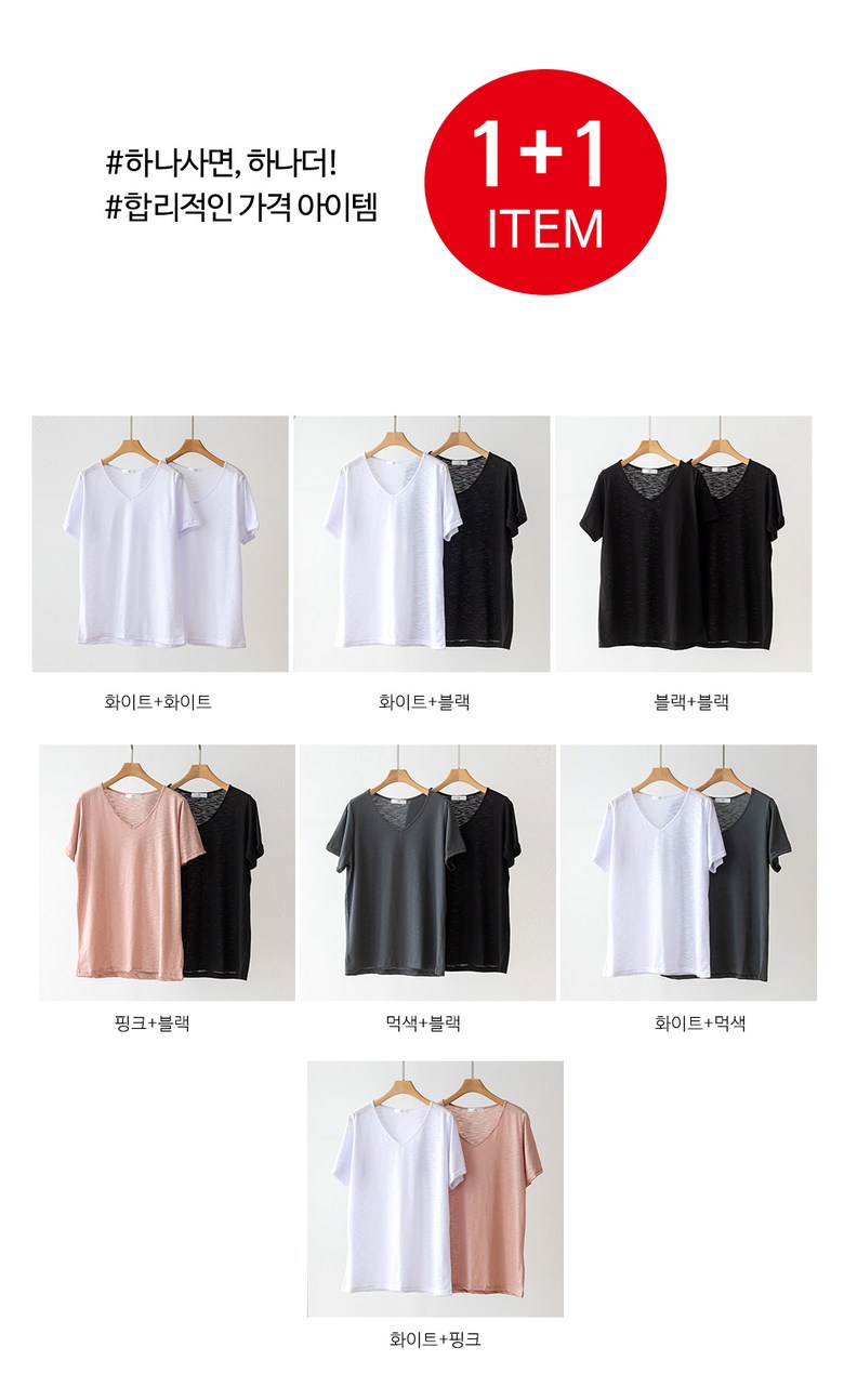 코코세븐 1+1 여성 빅사이즈 시원한 슬라브 브이넥 스판 이너 기본 반팔 티셔츠 66 77 88 99 100