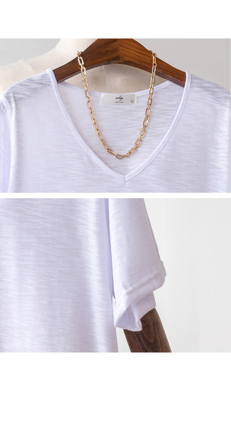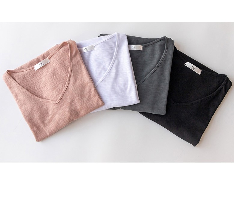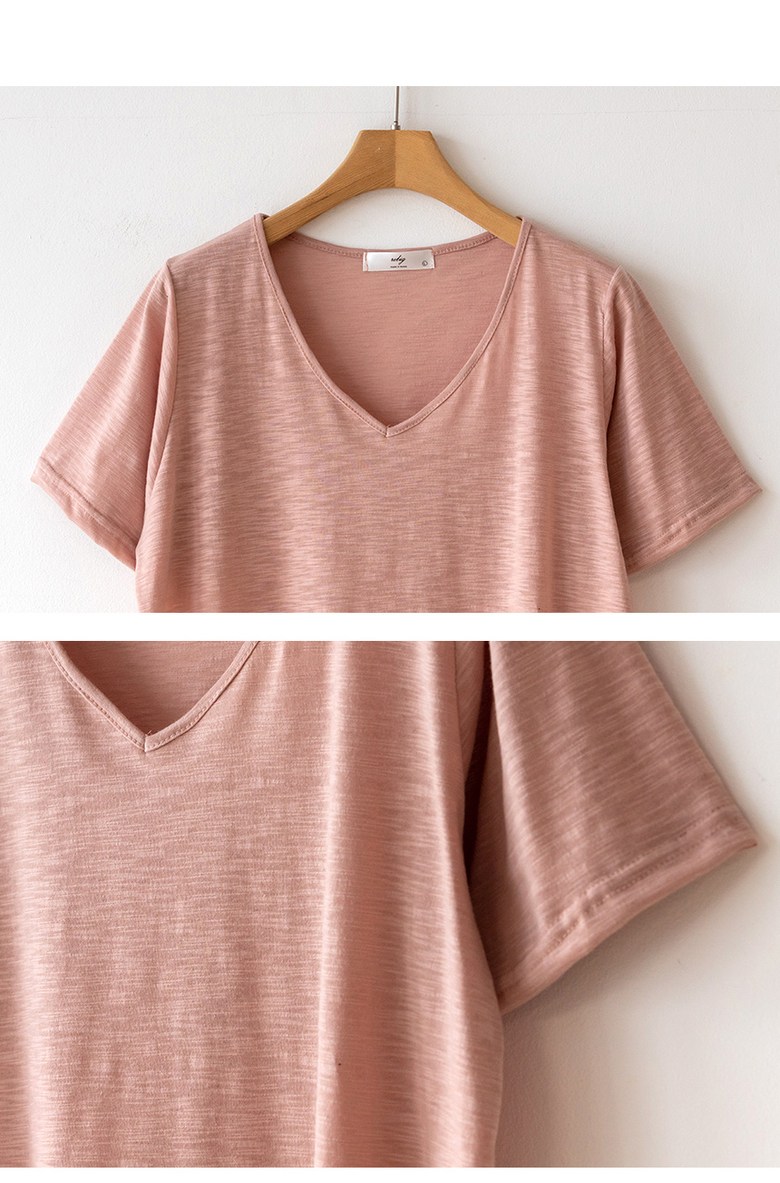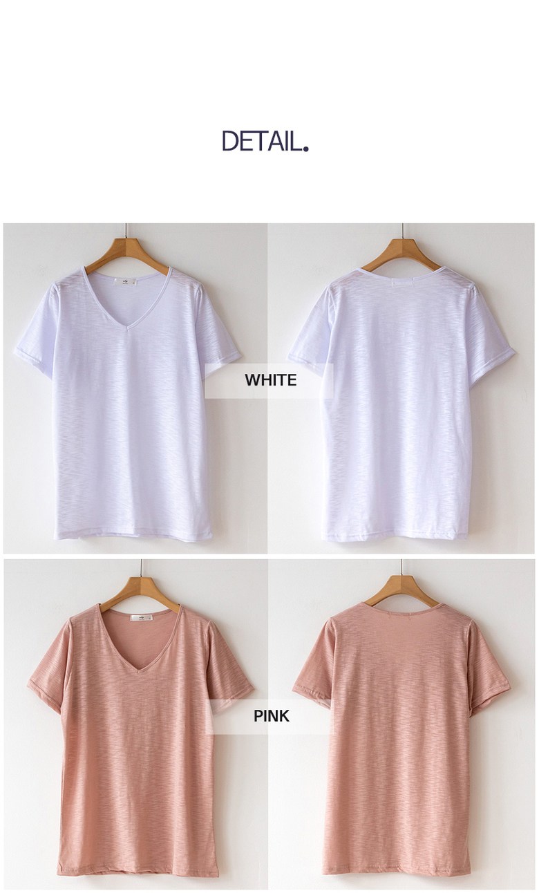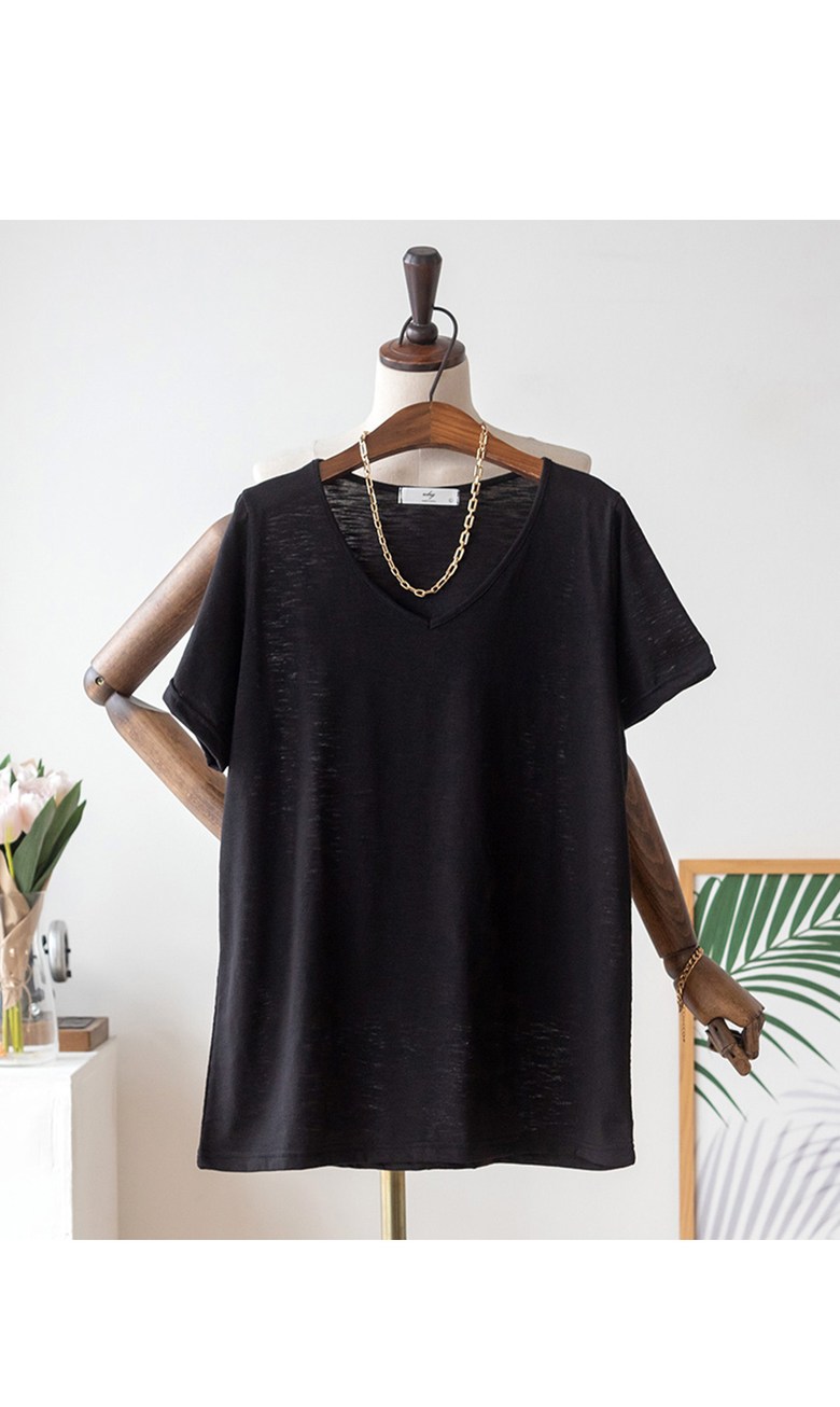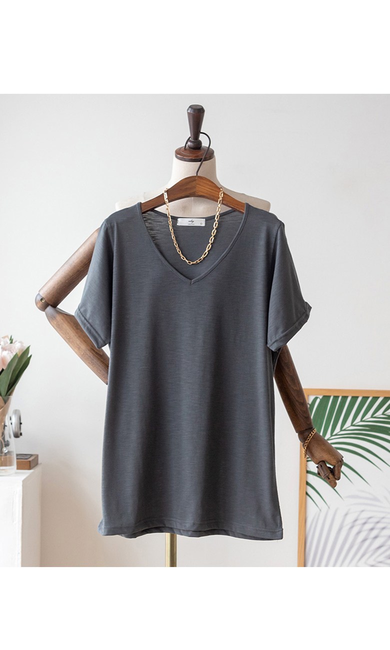 코코세븐 1+1 여성 빅사이즈 시원한 슬라브 브이넥 스판 이너 기본 반팔 티셔츠 66 77 88 99 100