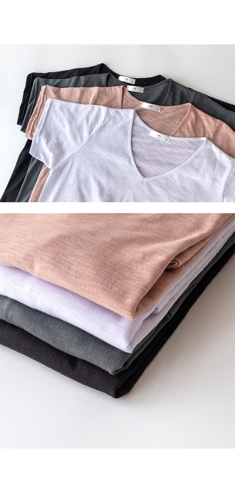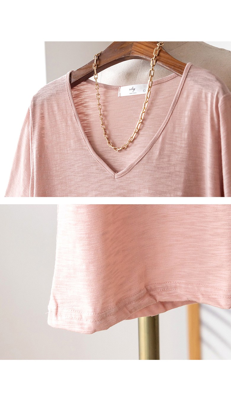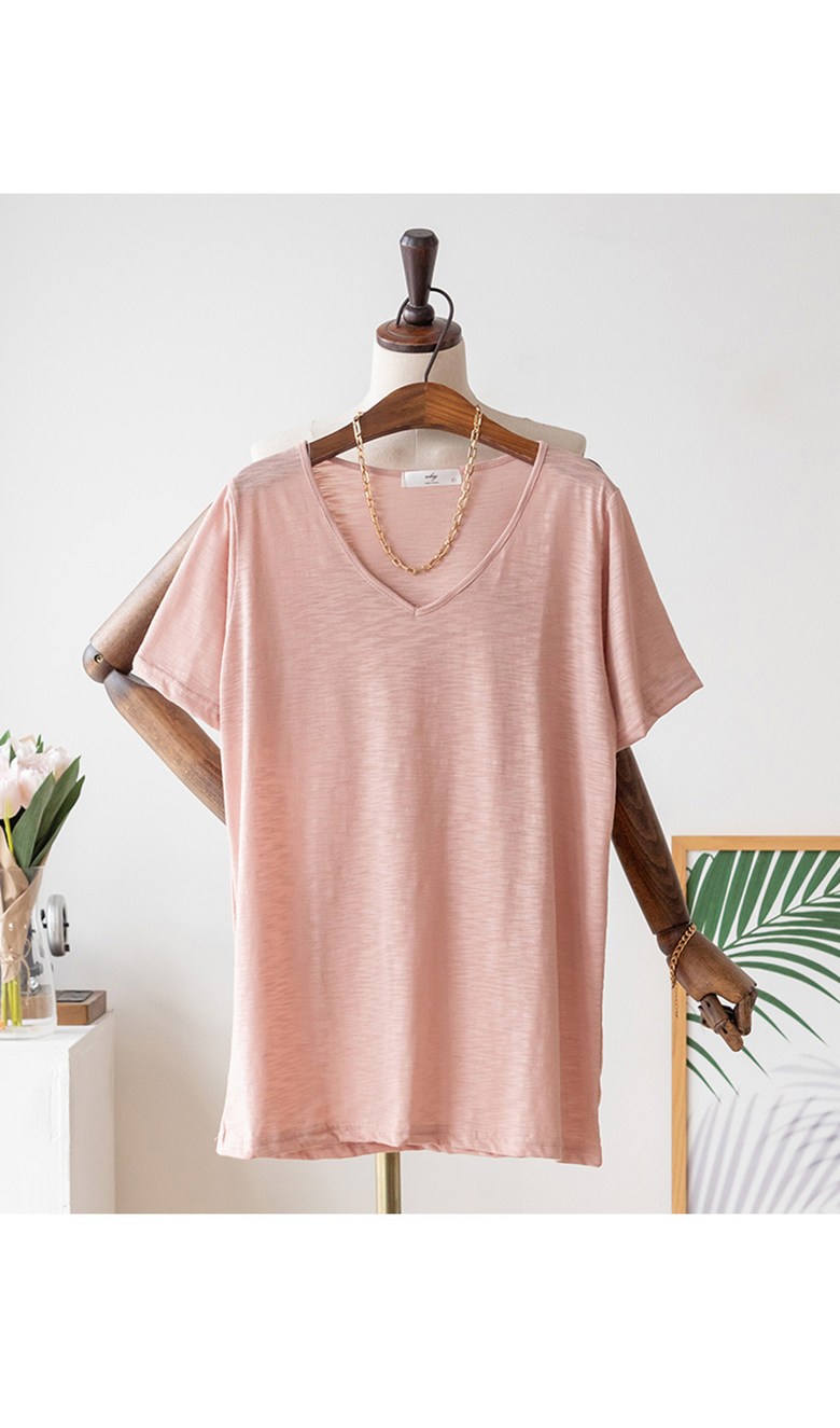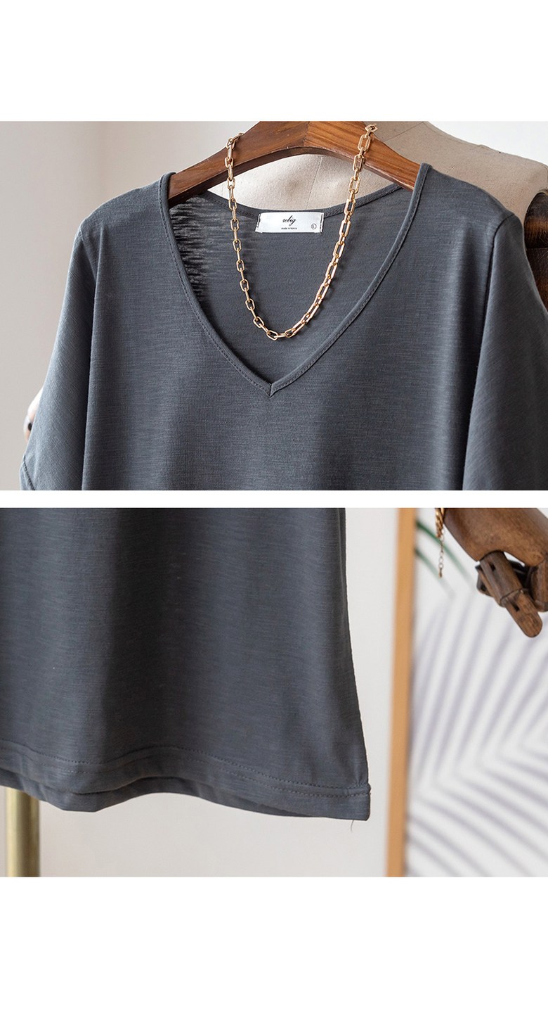 코코세븐 1+1 여성 빅사이즈 시원한 슬라브 브이넥 스판 이너 기본 반팔 티셔츠 66 77 88 99 100