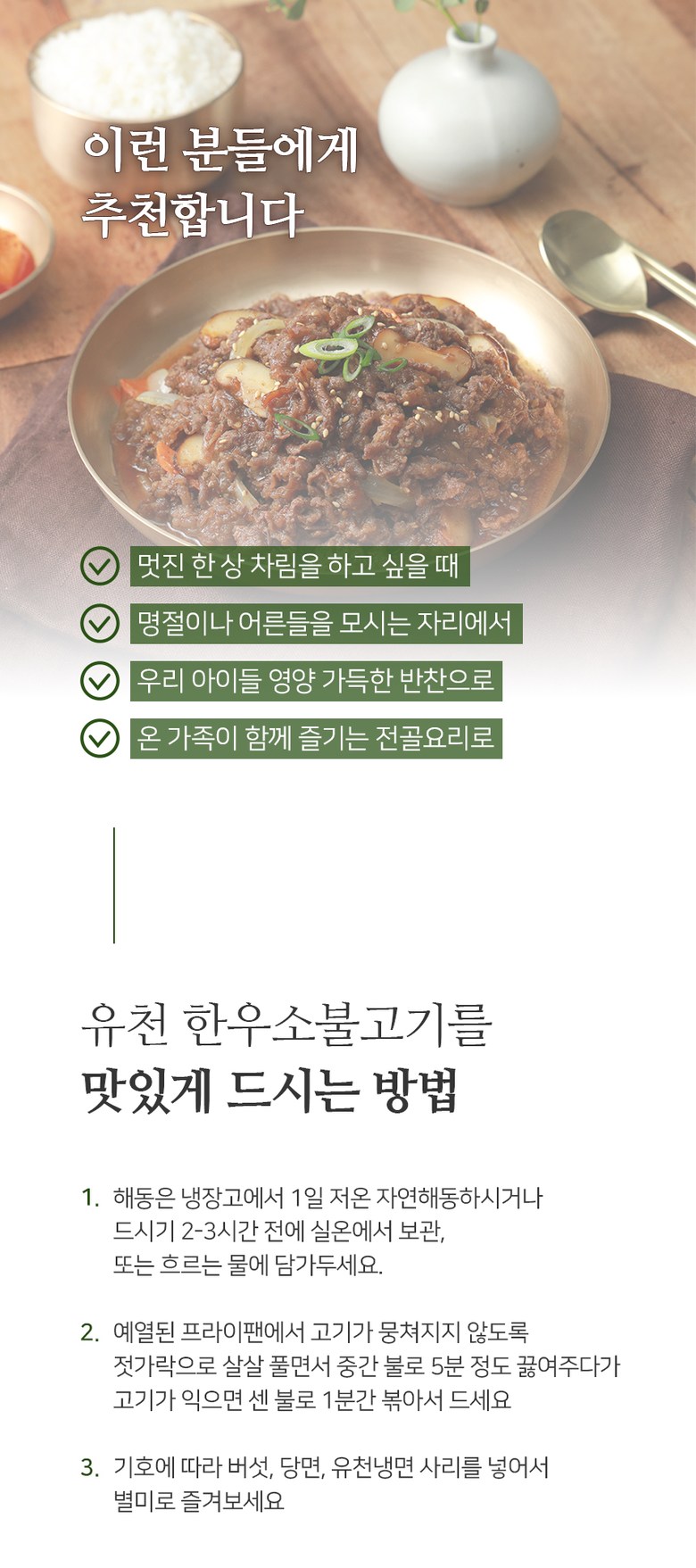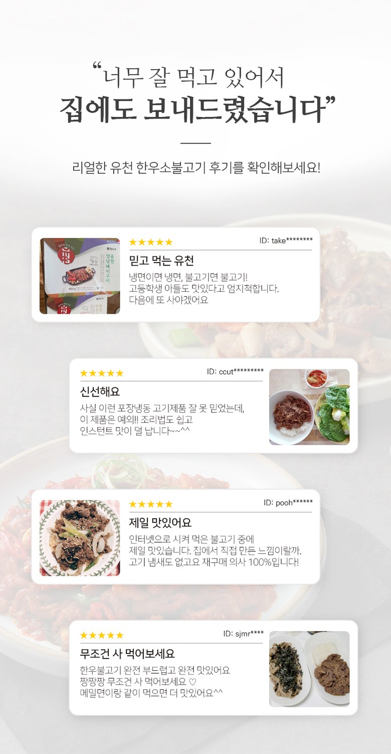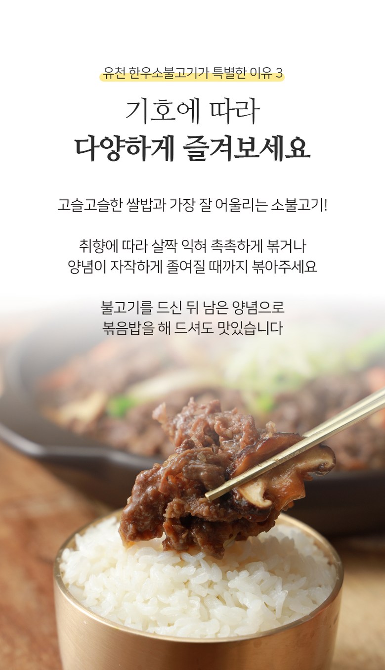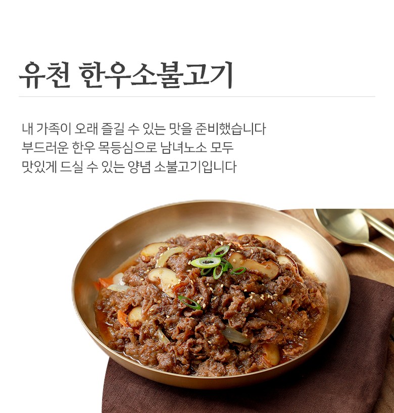 | 생산자(수입자) | 상품 상세페이지 참조 | 원산지 | 소불고기 /한우목심(국내산)60%,정제수,양조간장[탈지대두(외국산:인도산,미국산,중국산),소맥(미국산),천일염(호주산)]6.5%,양파(국내산)3.7%,설탕3.3%,배(국내산)2.8%,참기름,마늘(국내산),주정,참깨,생강,후추 |