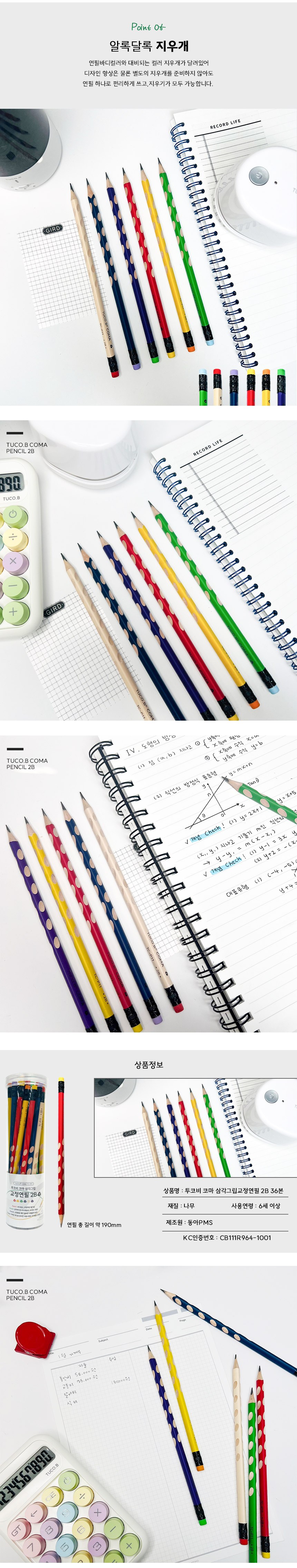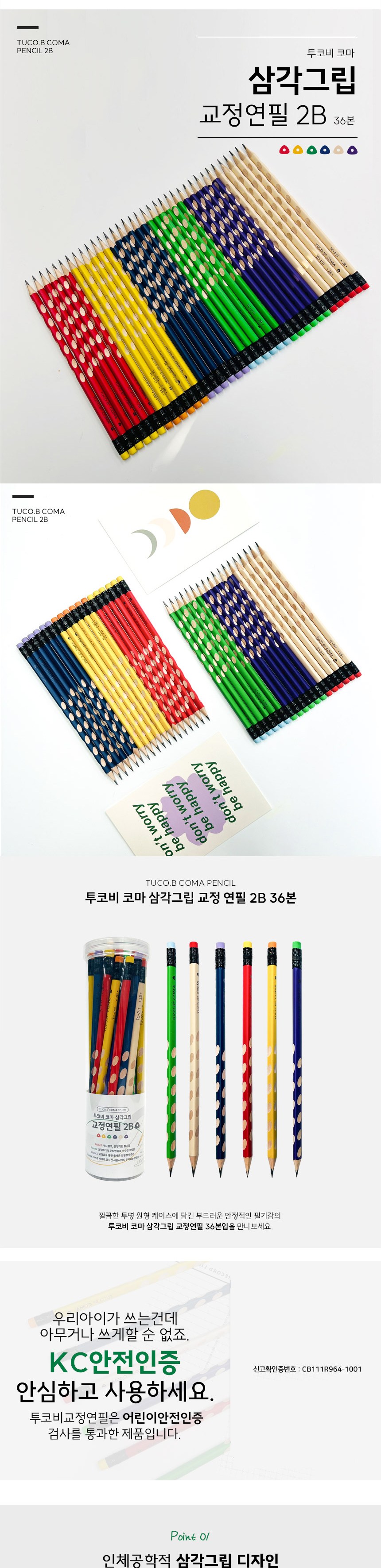 | 품명 및 모델명 | 투코비 코마 삼각그립 교정연필 TC-P11 36본 2B | KC 인증정보 | CB111R964-1001 |