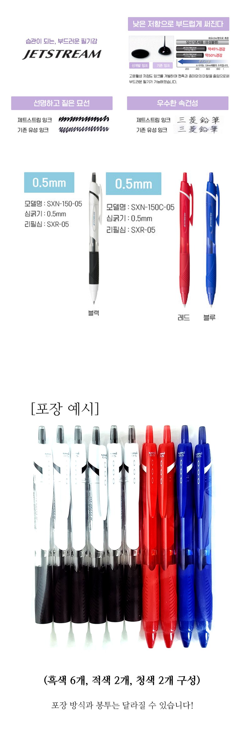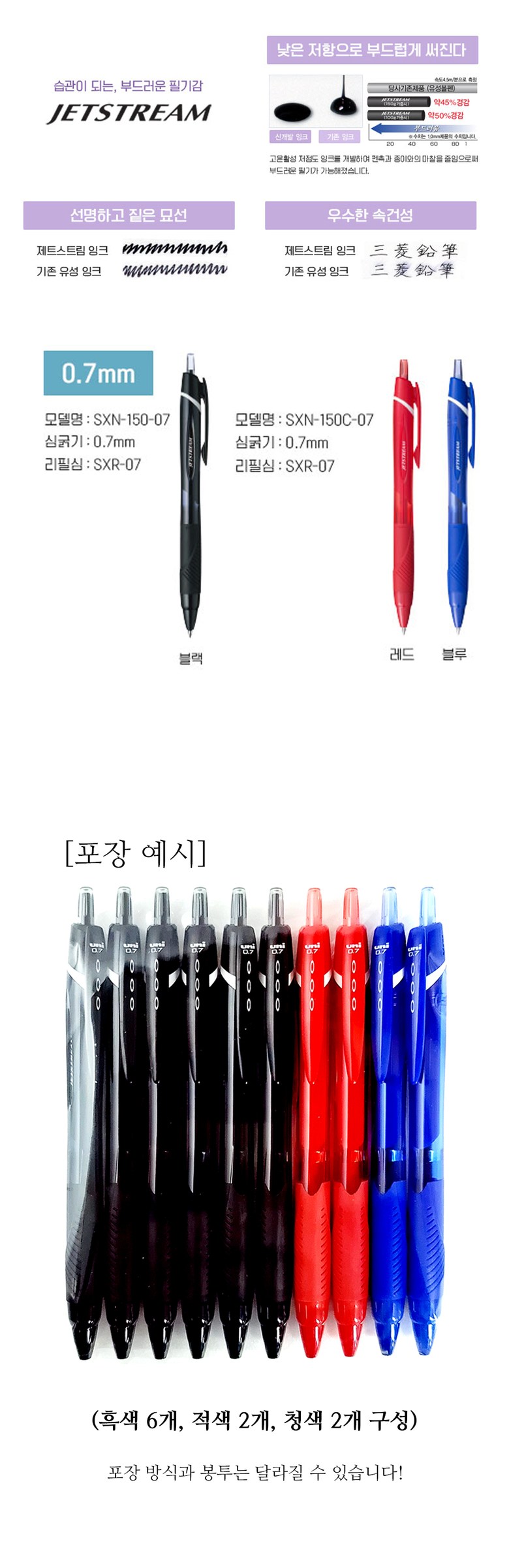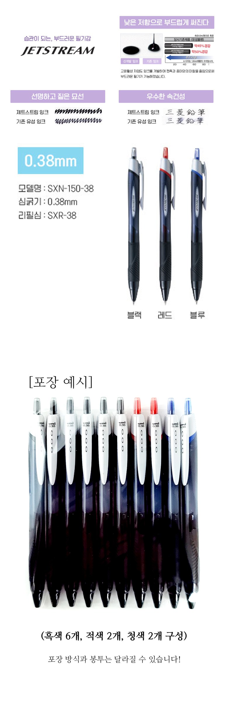 유한회사고루담 uni 제트스트림 단색 볼펜 SXN 150 0.38 0.5 0.7 1.0 10p (메쉬 파우치 포함), 0.38(흑6-청2..., 1개