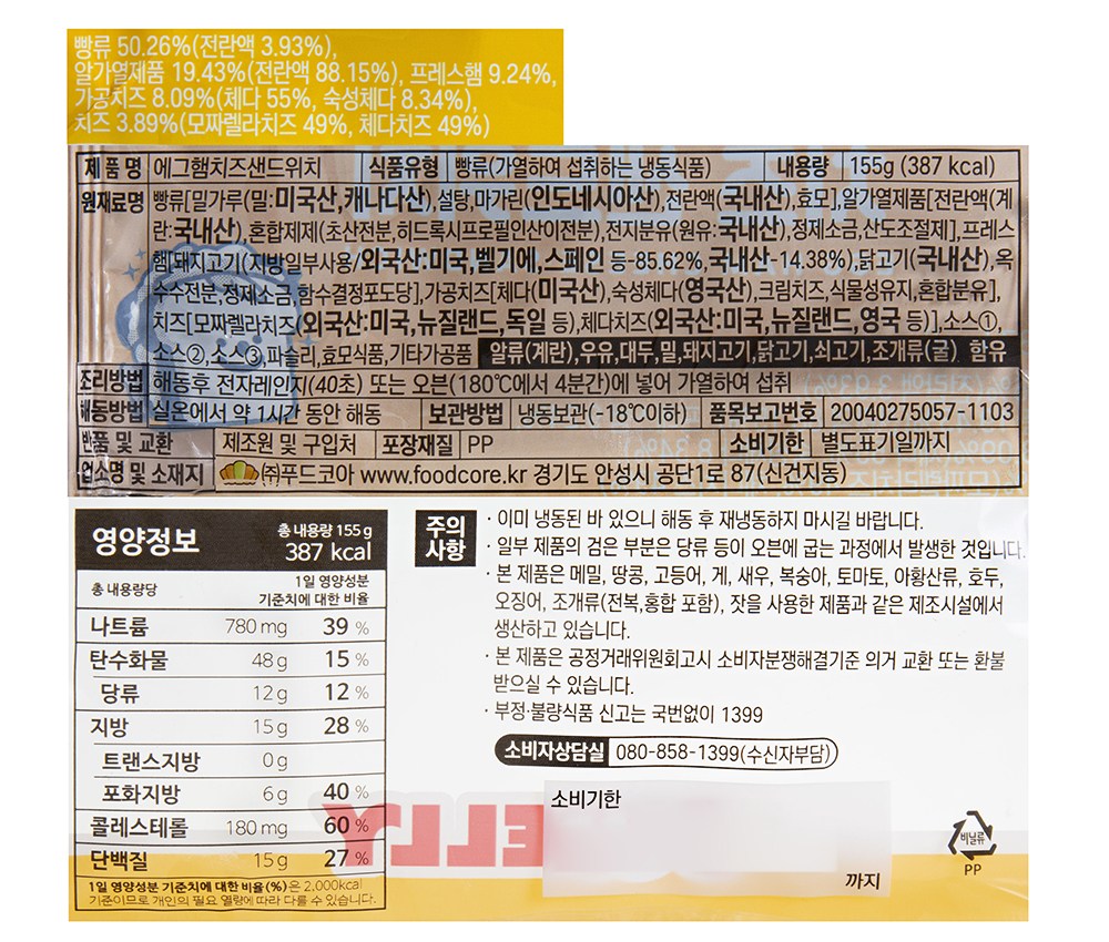 · 샌드위치를 상온에서 약 1시간 해동해주세요.
