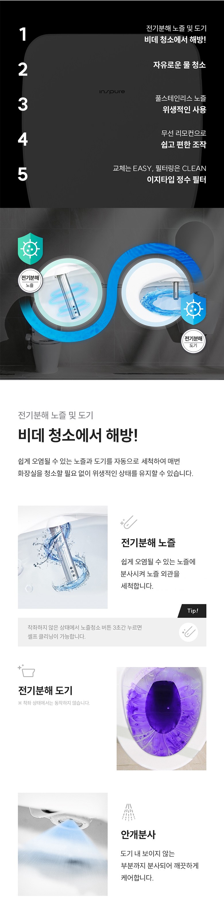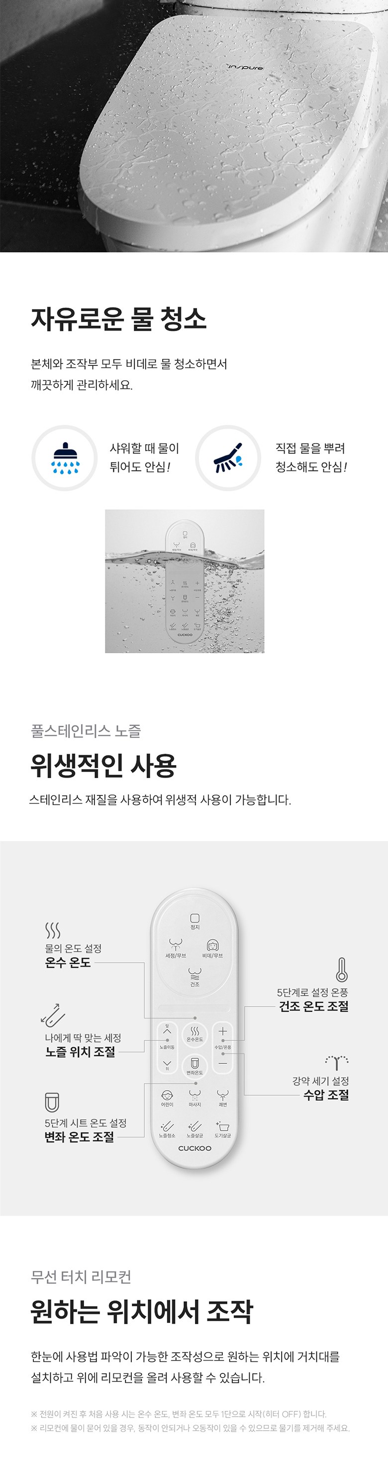 계좌이체- 비데 기능: 세정+건조