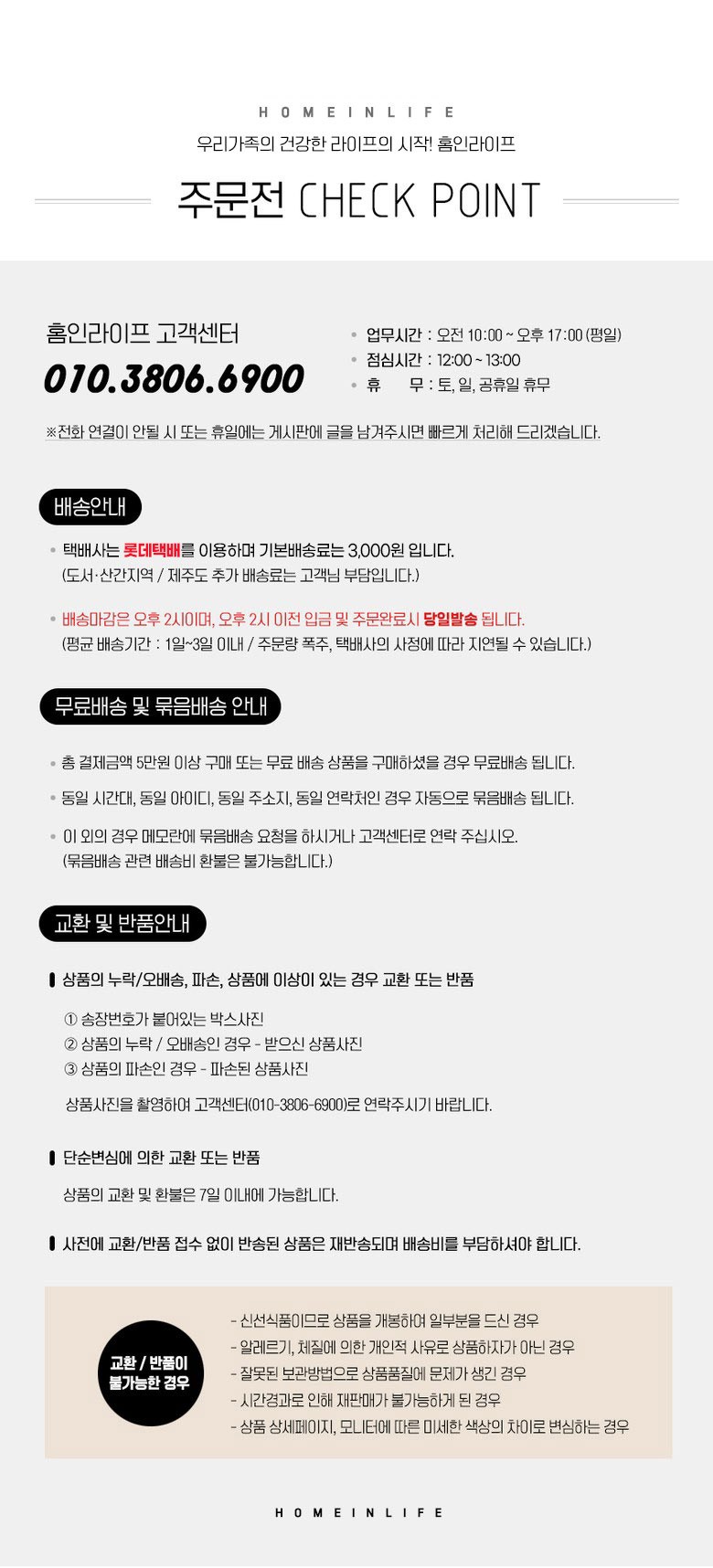 - ㆍ모니터 해상도의 차이로 인해 색상이나 이미지가 실제와 달라, 고객이 단순 변심으로 교환/반품을 무료로 요청하는 경우