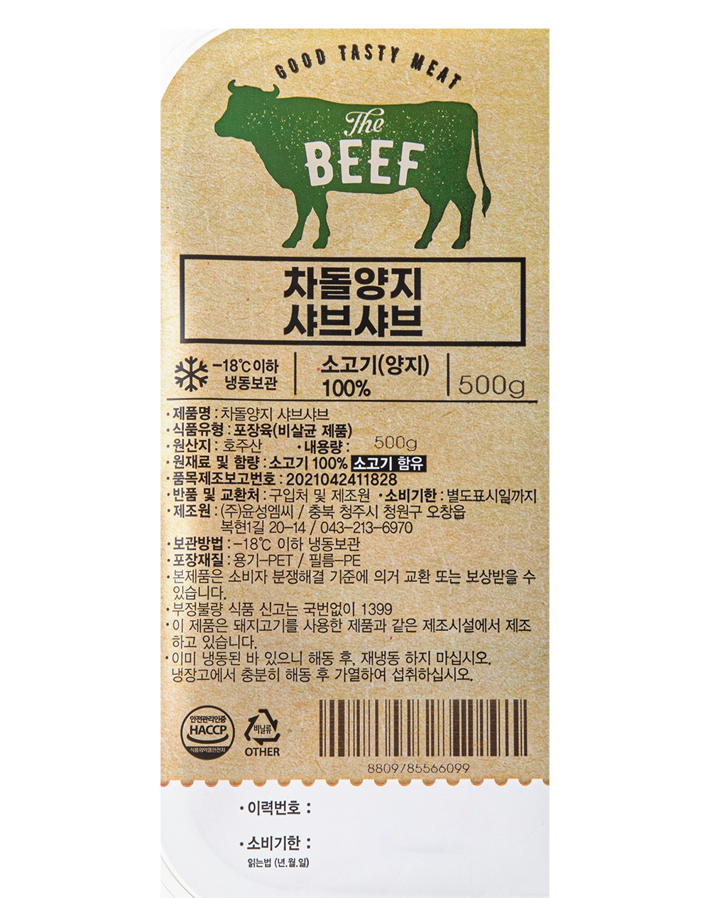 | 제조연월일, 소비기한 또는 품질유지기한 | 소비기한(또는 유통기한) : 2026년 12월 03일 이거나 그 이후인 상품 제조년월일 : 2025년 12월 04일 이후인 제조상품 | 세부 품목군별 표시사항 | 축산물 등급표시 : 해당 없음 / 이력번호 표시유무 : 이력번호 표시제품임 |
