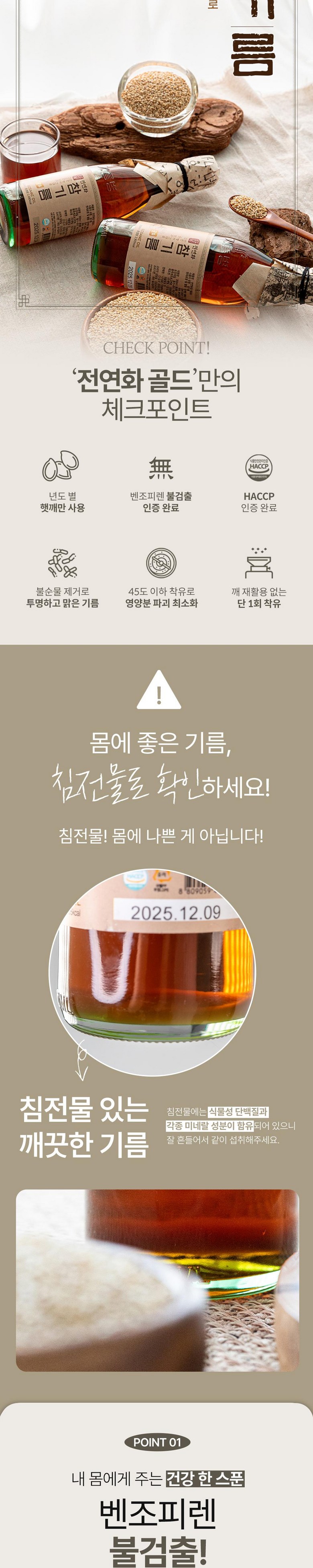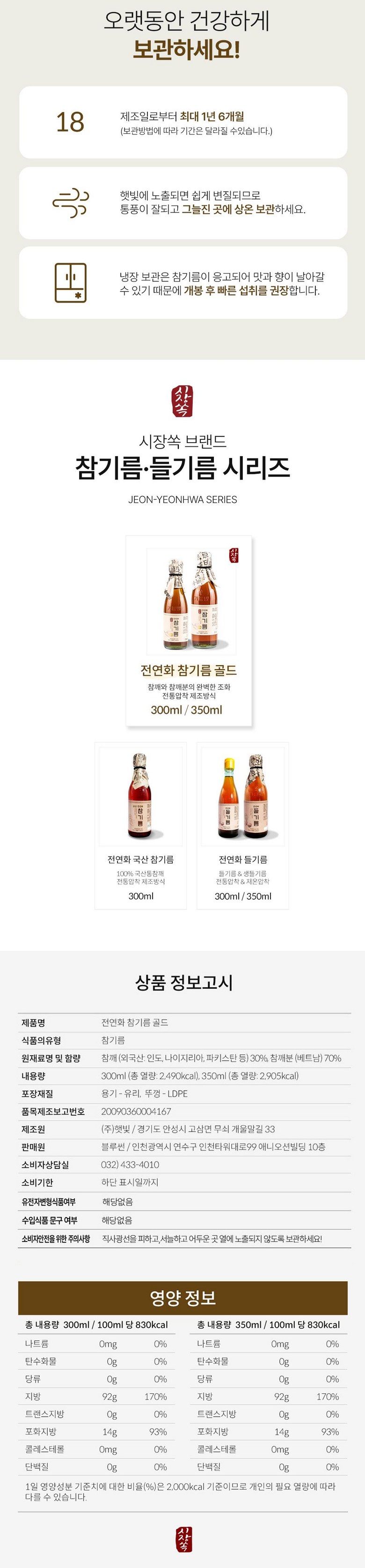 | 제품명 | 시장쏙 전연화 참기름 골드 | 식품의 유형 | 참기름 |