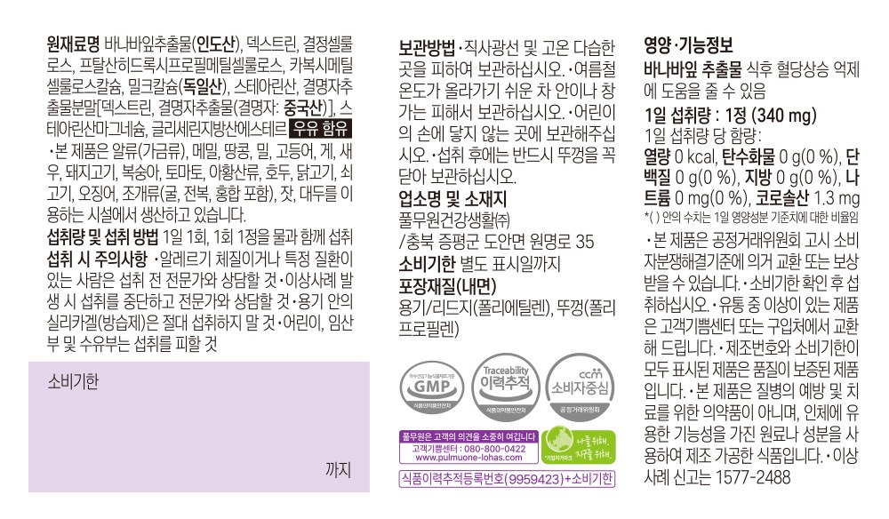 | 제품명 | 바나바잎 혈당케어 | 제조업소의 명칭과 소재지 | 컨텐츠 참조 |
