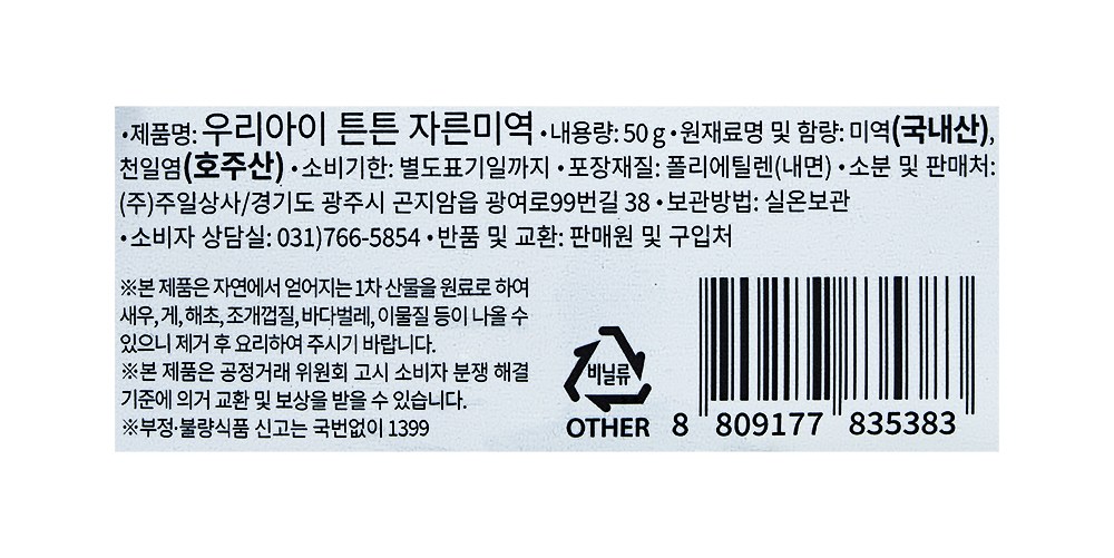 부드럽고 향긋한 자른 미역이에요. 작은 크기로 잘려 있어 활용하기 편리하지요. 물에 조금 불려 놓으면 금세 매끈한 자태를 뽐낸답니다. 국이나 죽 등 다양한 요리에 넣어 우리 아이의 한 끼 식사 메뉴로 활용해보세요. 구수한 풍미로 입맛을 사로잡을 거예요.