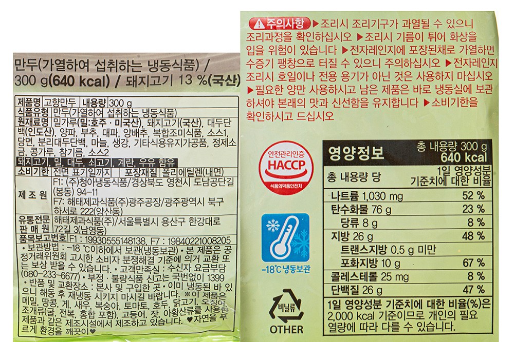 담백하고 촉촉한 해태 고향만두