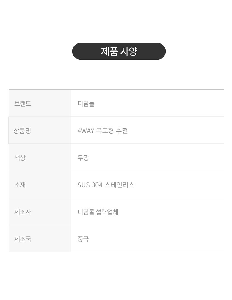 | 제조국(원산지) | 중국 OEM | 제조자(수입자) | 제이씨엘인더스트리(주) |