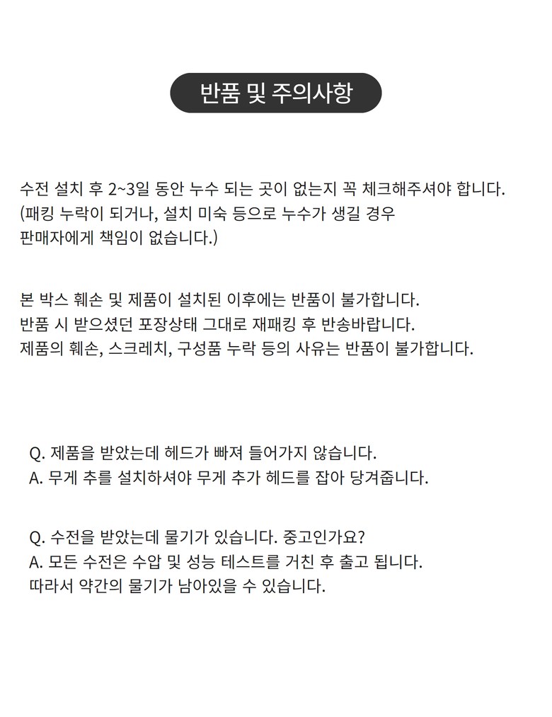 - ㆍ모니터 해상도의 차이로 인해 색상이나 이미지가 실제와 달라, 고객이 단순 변심으로 교환/반품을 무료로 요청하는 경우