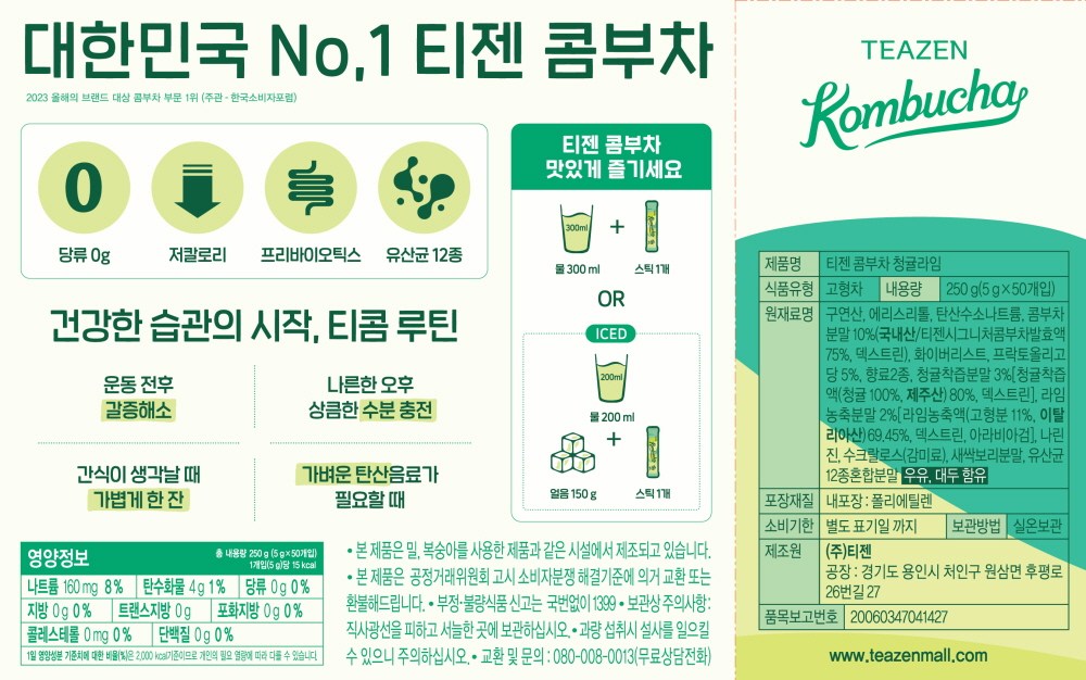| 포장단위별 내용물의 용량(중량), 수량 | 5g x 50개입 x 2개 | 원재료명 및 함량 | 컨텐츠 참조 |