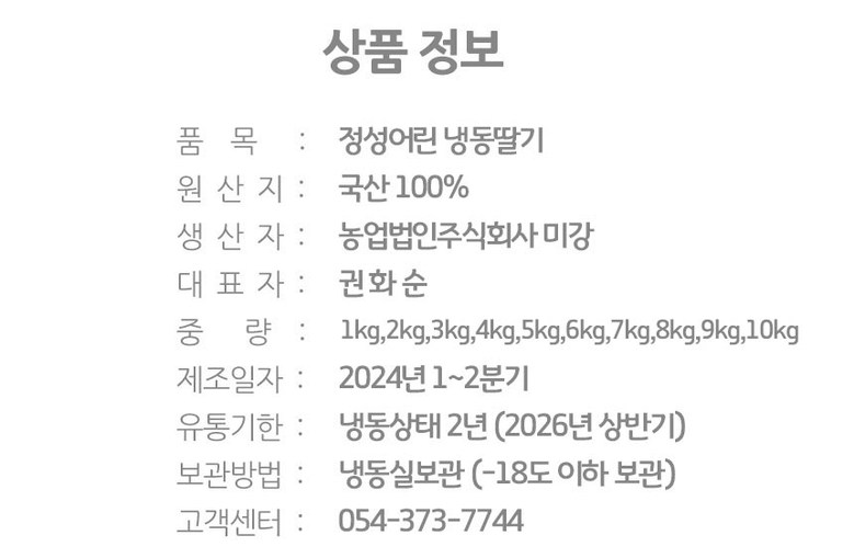 | 배송방법 | 신선/냉장/냉동 | 배송비 | 무료배송 - 도서산간 지역 배송불가 |