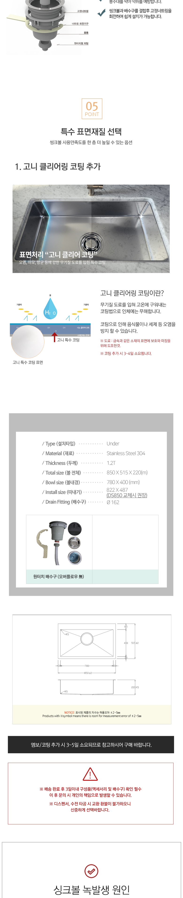 | 제조국(원산지) | 중국 | 제조자(수입자) | 백조씽크 |