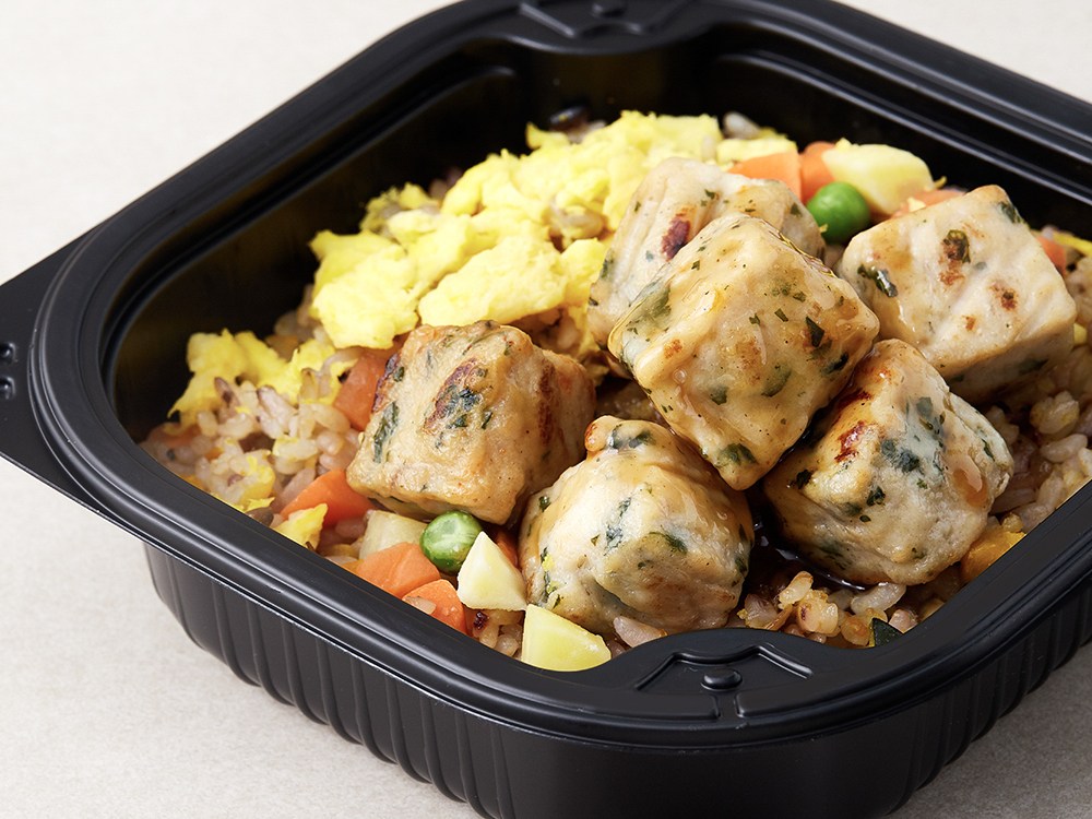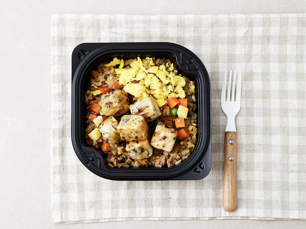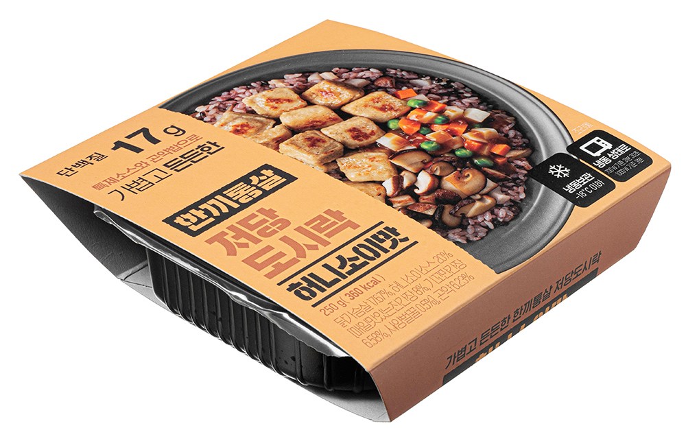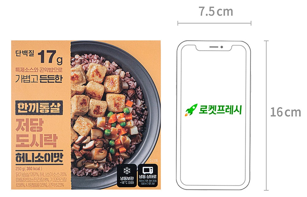 전자레인지로 손쉽게 조리할 수 있는 한끼통살 도시락이에요. 담백한 곤약연근영양밥과 은은한 숯불향의 닭가슴살 큐브가 잘 어울린답니다. 여기에 허니소이소스가 달콤하면서 짭조름한 맛을 더해주지요. 운동한 이후나 바쁜 아침에 든든하게 즐겨보세요.