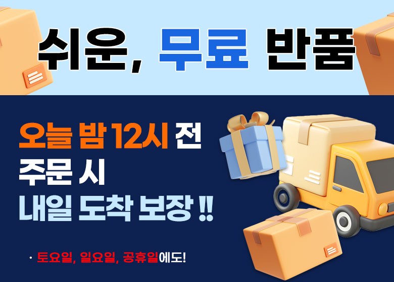 - ㆍ모니터 해상도의 차이로 인해 색상이나 이미지가 실제와 달라, 고객이 단순 변심으로 교환/반품을 무료로 요청하는 경우