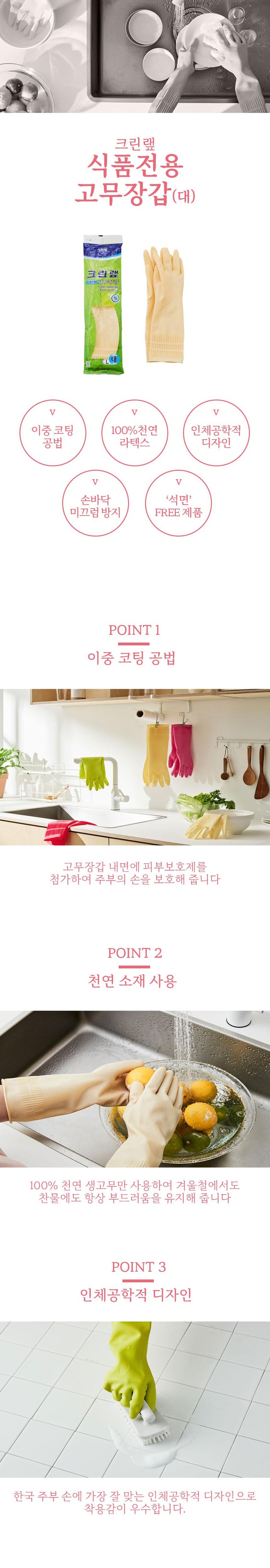 | 품명 및 모델명 | 크린랲 고무장갑 식품전용 대 | 인증/허가 사항 | 해당사항 없음 |