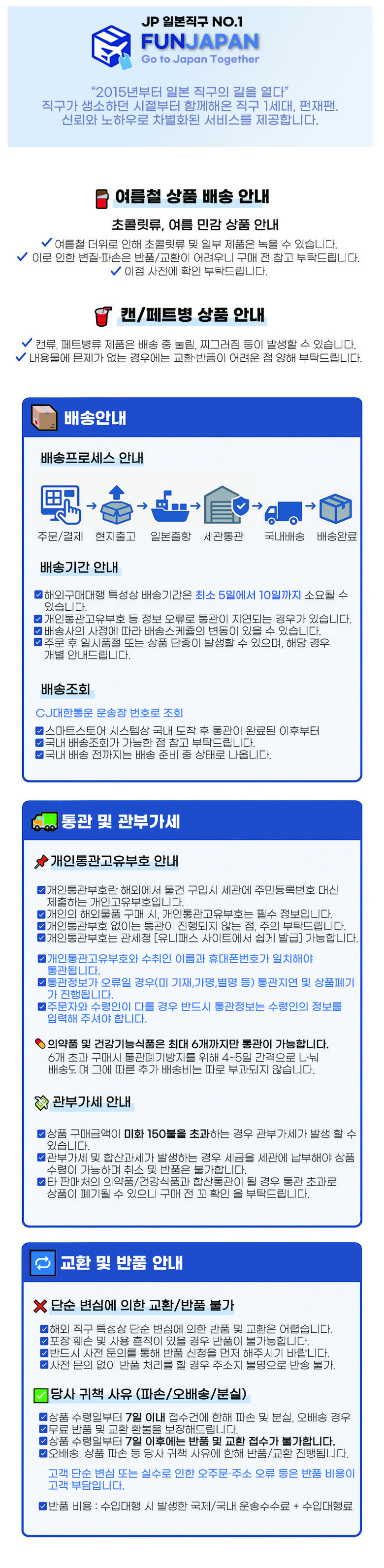 - 법규 개정에 따라 개인통관고유부호 검증 절차가 강화되었습니다. 결제 단계에서 받는 사람의 정보가 관세청 등록 정보 (성명, 휴대폰, 개인통관고유부호, 주소) 와 일치하는지 확인해주세요.