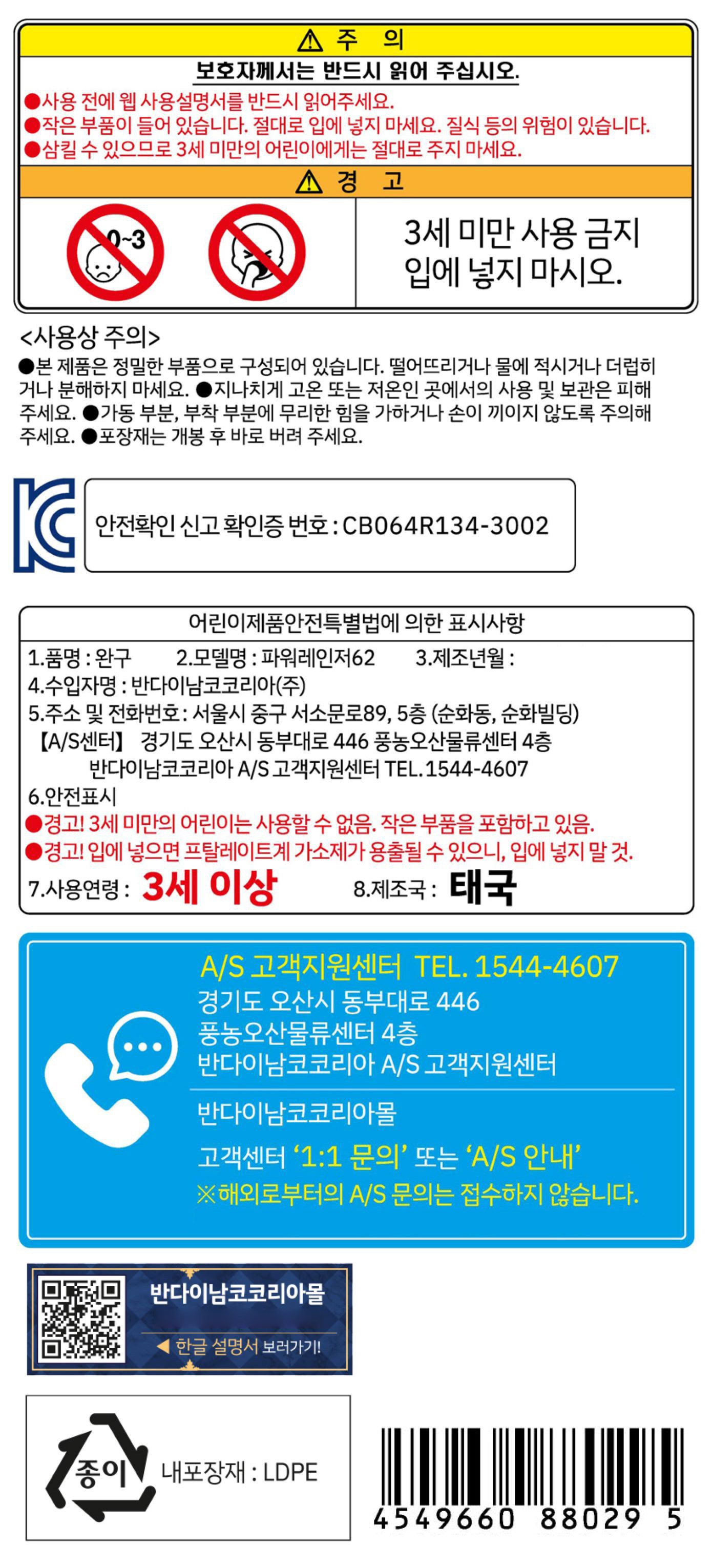 | 품명 및 모델명 | 반다이 파워레인저 킹덤포스 DX 갓 비틀 | KC 인증정보 | CB064R134-3002 |