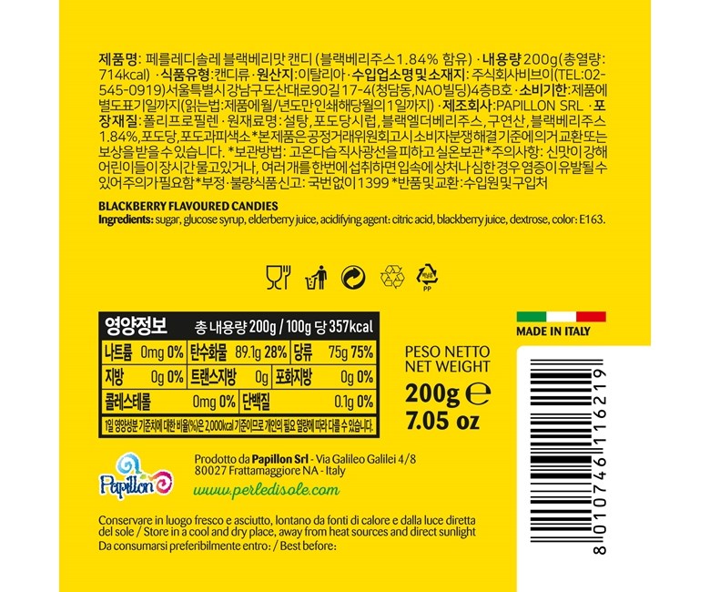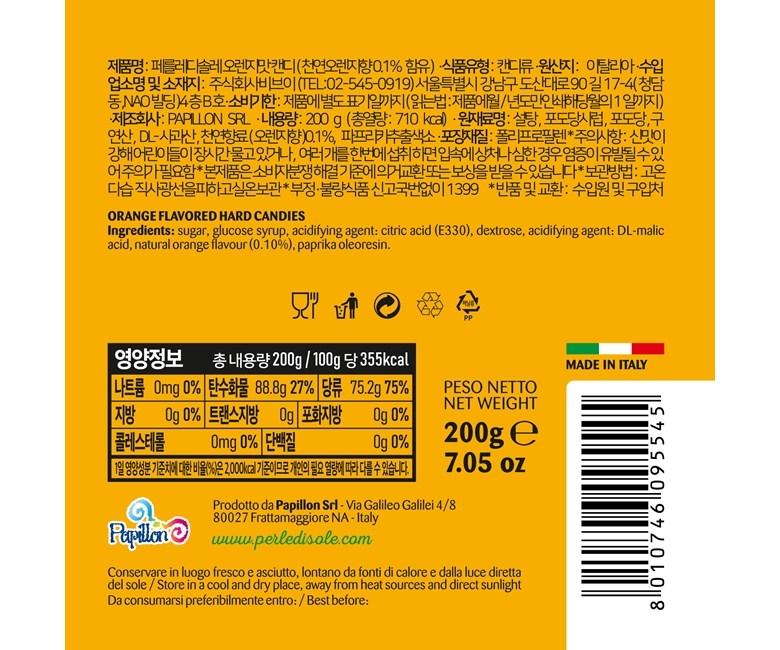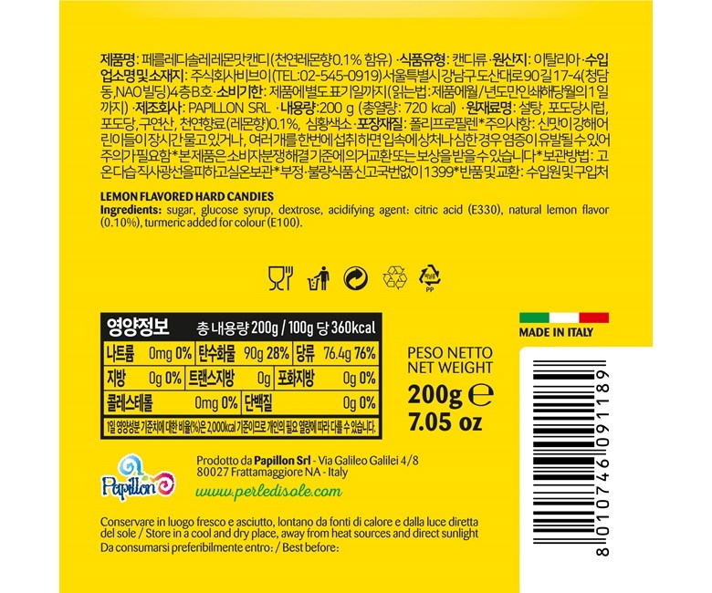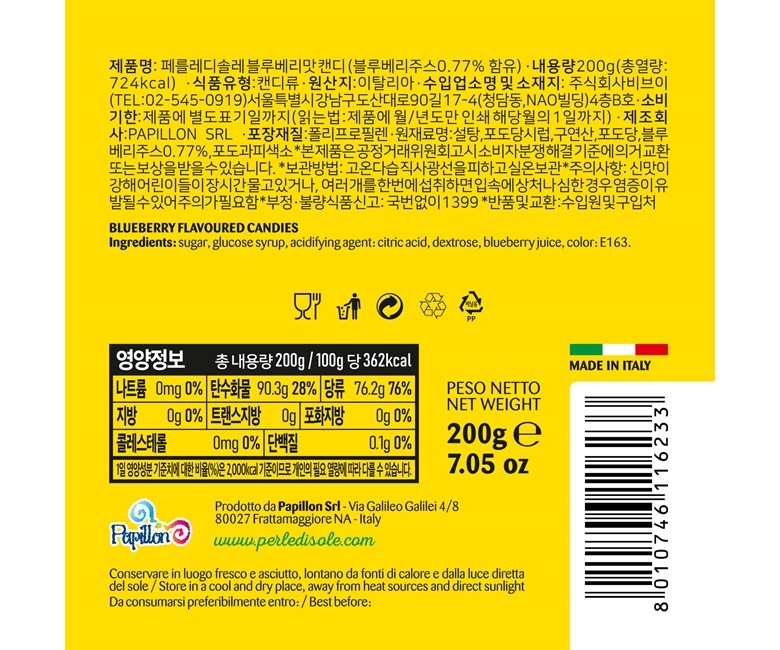 | 제품명 | 페를레디솔레 캔디 4종 | 식품의 유형 | 캔디 |