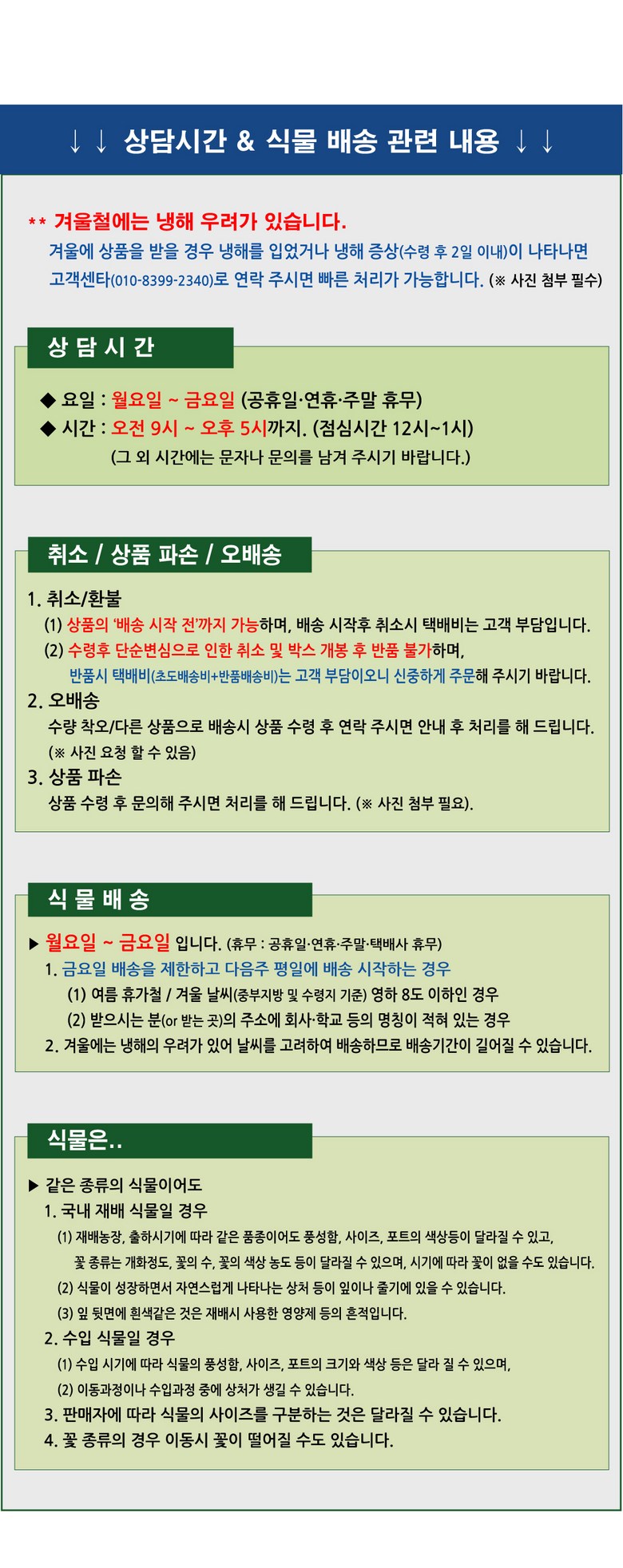 - ㆍ모니터 해상도의 차이로 인해 색상이나 이미지가 실제와 달라, 고객이 단순 변심으로 교환/반품을 무료로 요청하는 경우