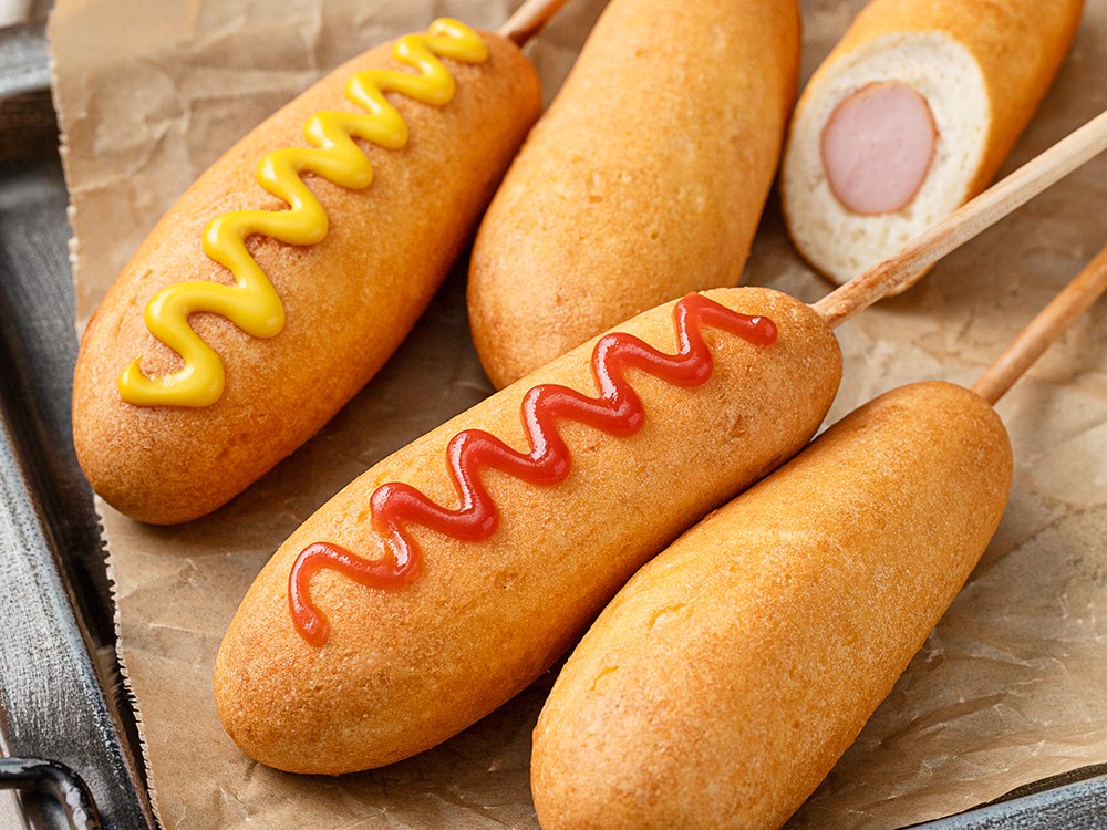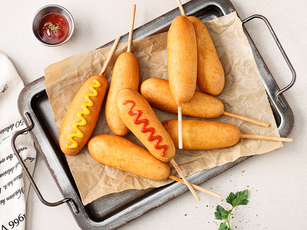 폭신폭신하고 부드러운 식감이 매력적인 핫도그예요. 탱탱하고 뽀득뽀득한 후랑크 소시지를 품고 있지요. 한 입 먹으면, 고소한 풍미로 입맛을 사로잡는답니다. 노릇하게 조리해 든든한 간식으로 즐겨보세요. 케첩이나 머스터드소스를 더해 드셔도 좋아요.