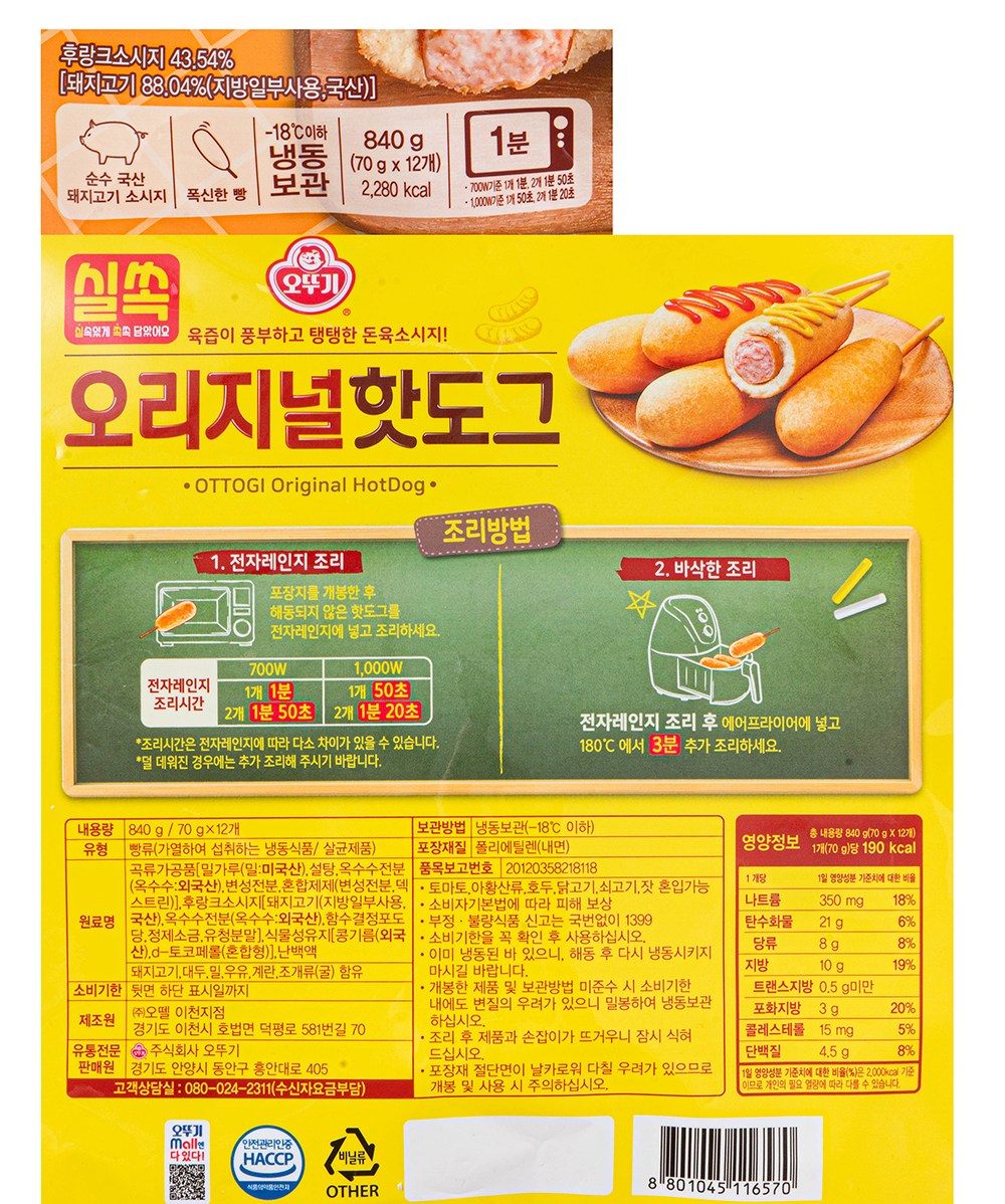| 제품명 | 실쏙 오리지널 핫도그 | 식품의 유형 | 컨텐츠 참조 |