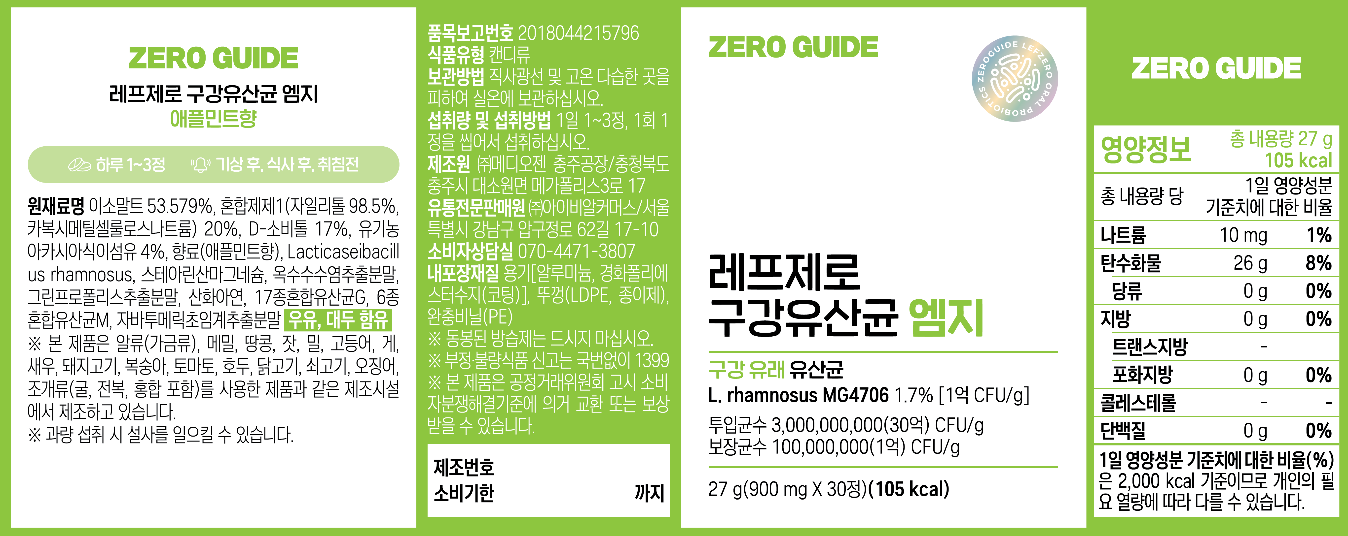 | 제품명 | 레프제로 구강유산균 엠지 | 식품의 유형 | 컨텐츠 참조 |
