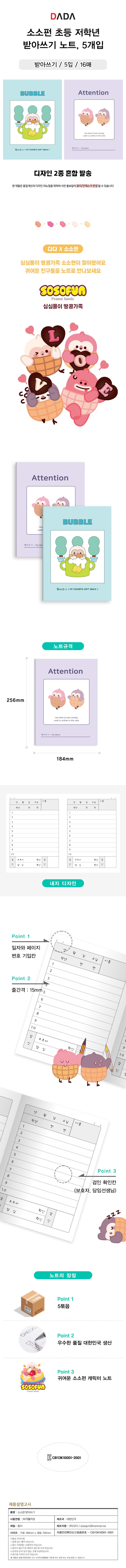 | 품명 및 모델명 | 다다 소소펀 초등 저학년 받아쓰기 노트 | KC 인증정보 | CB113K10001-2001 |