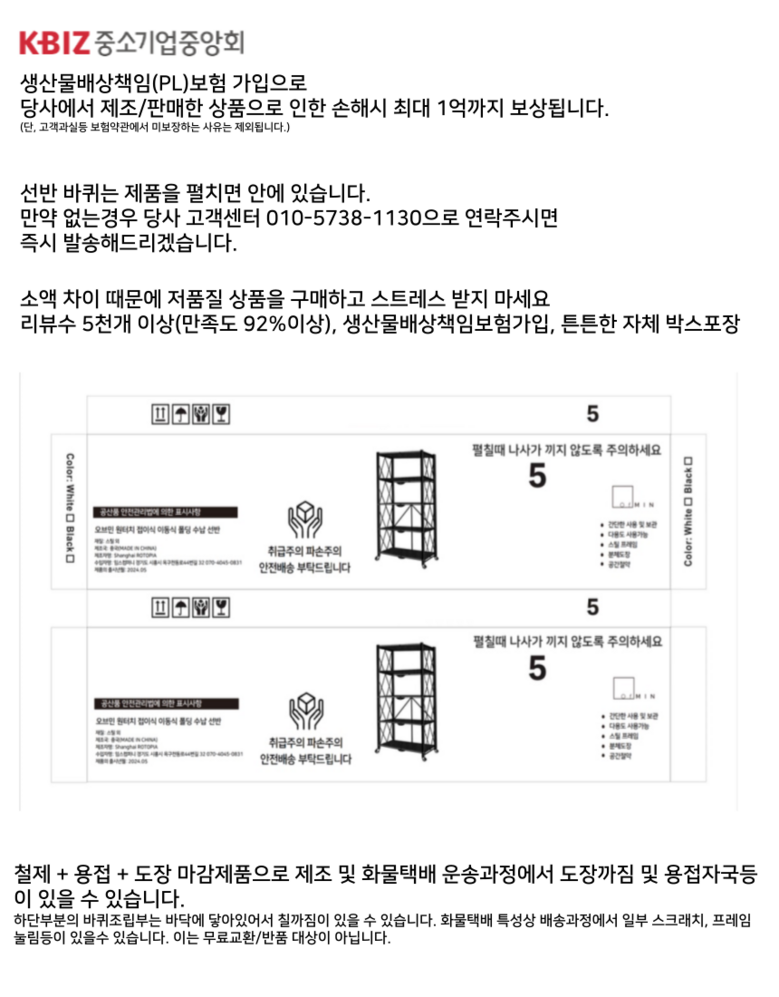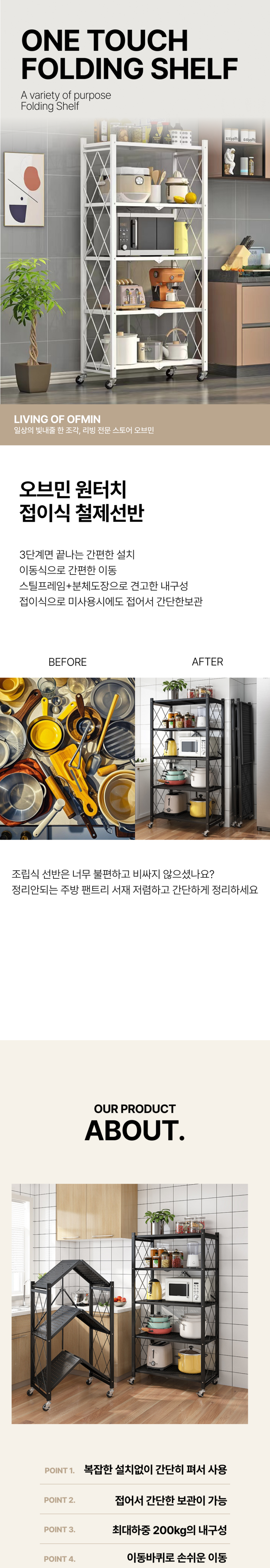 | 품명 및 모델명 | 오브민 원터치 폴딩 이동식 수납 접이식 철제선반 | 인증/허가 사항 | 해당사항없음 |