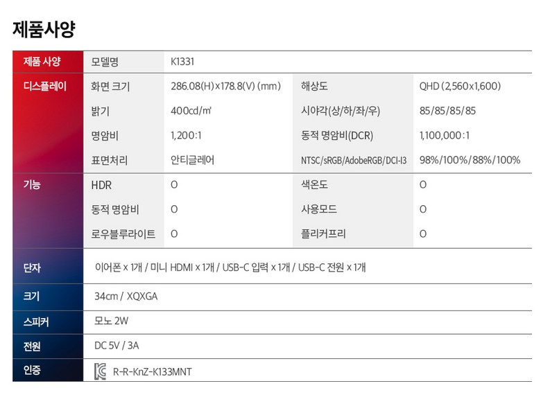 품명 및 모델명 | 상품 상세페이지 참조 | KC 인증정보 | 상품 상세페이지 참조 |