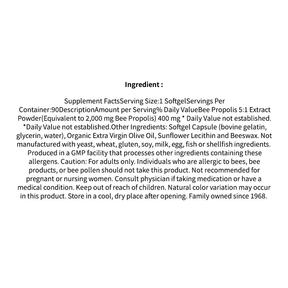 프로폴리스 보충제입니다. 프로폴리스는 꿀벌이 나무 싹, 수액 및 기타 식물에서 수집한 수지의 혼합물이며 벌집의 작은 틈을 밀봉하는 데 사용됩니다.