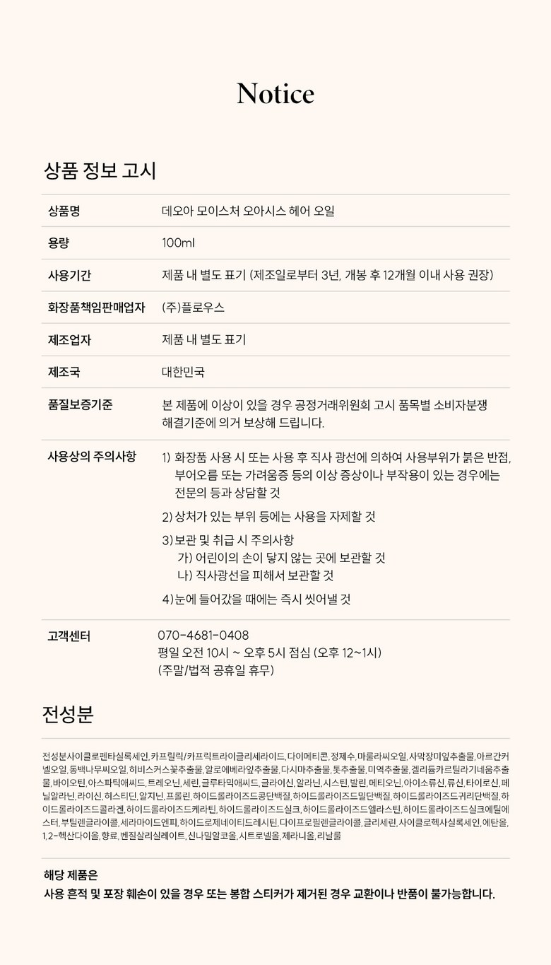 - 헤어영양제 기능: 손상케어, 영양공급, 정전기방지