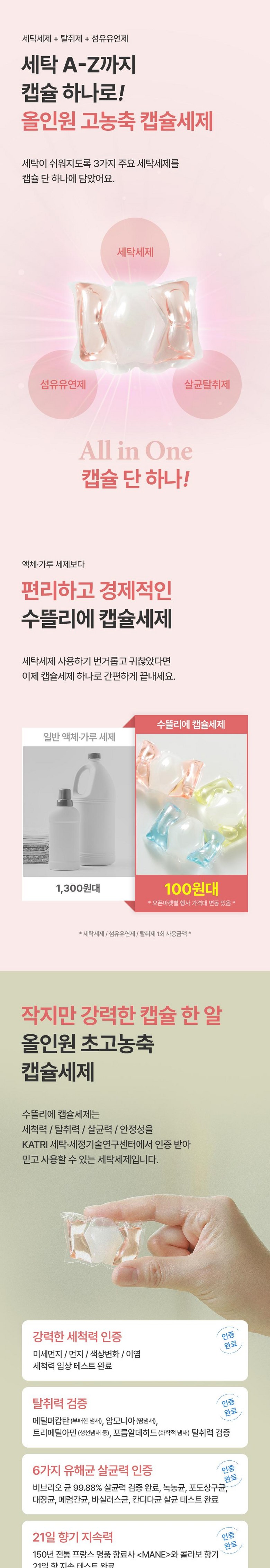 수뜰리에 8in1 고농축 올인원 캡슐세제 로즈애플, 40개입, 1개