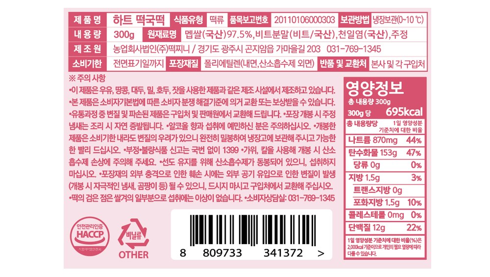 평범한 한 끼를 특별한 순간으로 바꾸고 싶을 때, 떡찌니 하트 떡국떡을 사용해보세요. 멥쌀과 비트 분말로 세 가지 색감을 완성했는데요. 아기자기한 하트 모양 덕분에 떡국이나 떡볶이에 넣으면 보는 재미를 더하는 톡톡 튀는 포인트가 되어준답니다. 취향에 맞게 활용해, 식사 시간 내내 즐거움을 만끽해보세요.