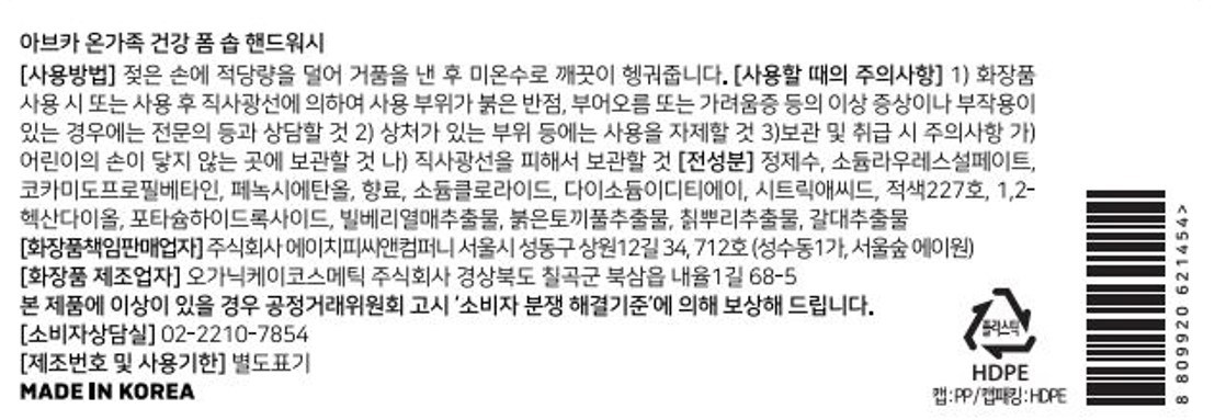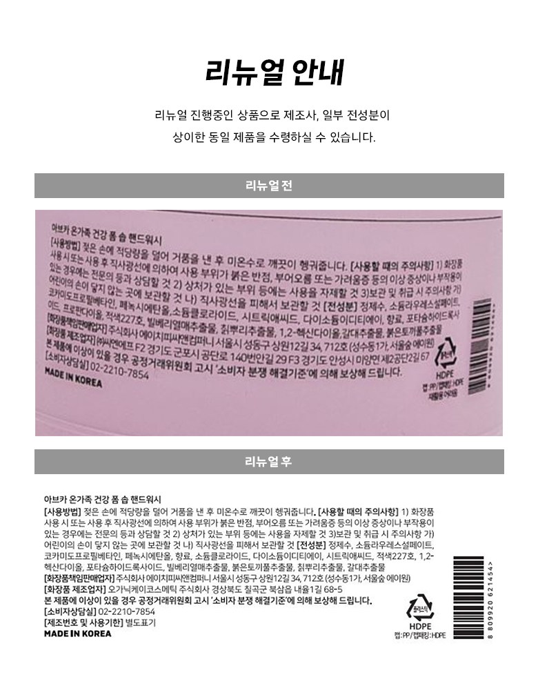 | 화장품제조업자, 화장품책임판매업자 및 맞춤형화장품판매업자 | 컨텐츠 참조 | 제조국 | 한국 |